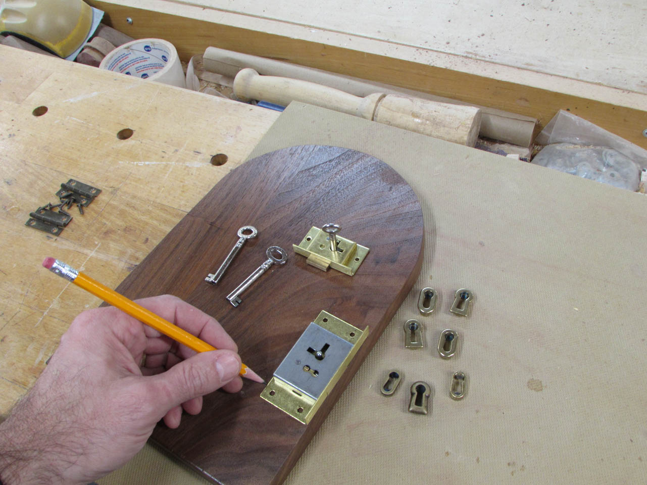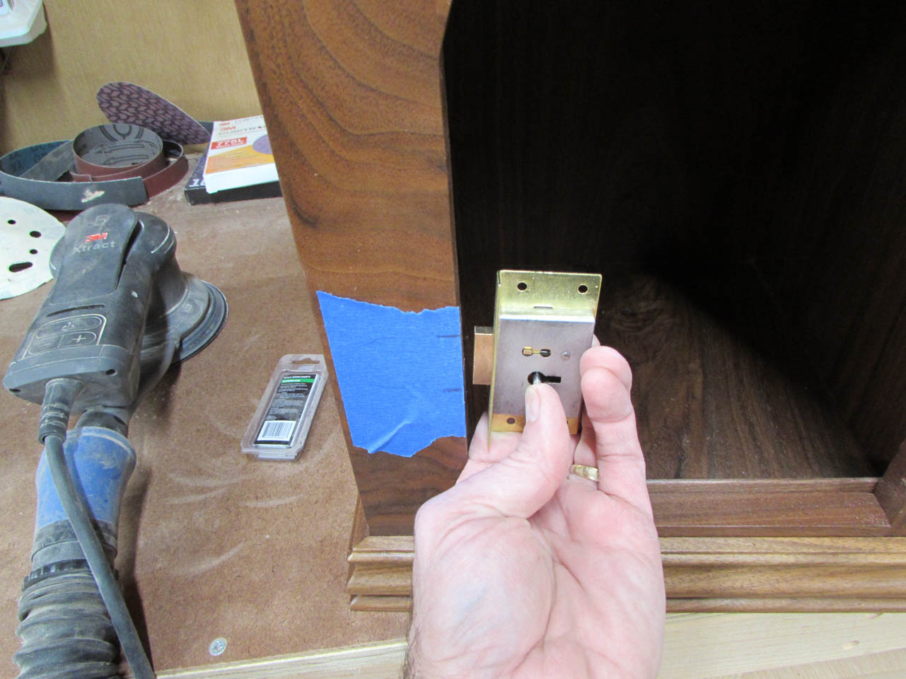 I ordered all of the hardware about two weeks ago and it seemed to get lost in shipping so I ordered another lock set but it will be a couple more days before it arrives. To keep things moving, I am going to apply finish now, then add the hardware later.