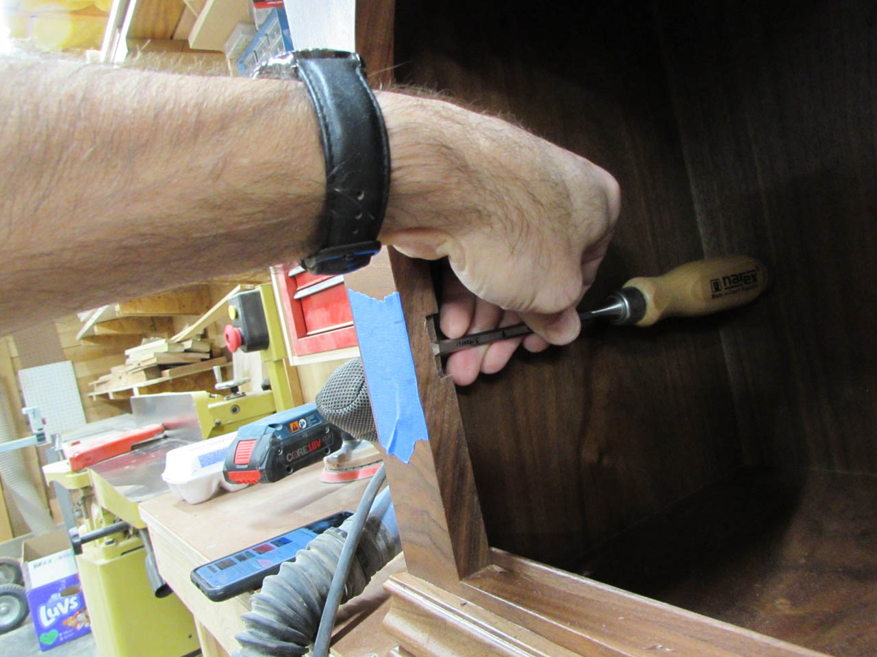 I also need to carve out a notch for the bolt on the lock. This would have been far easier before assembly but delays on the hardware would have set me back weeks if I had waited.