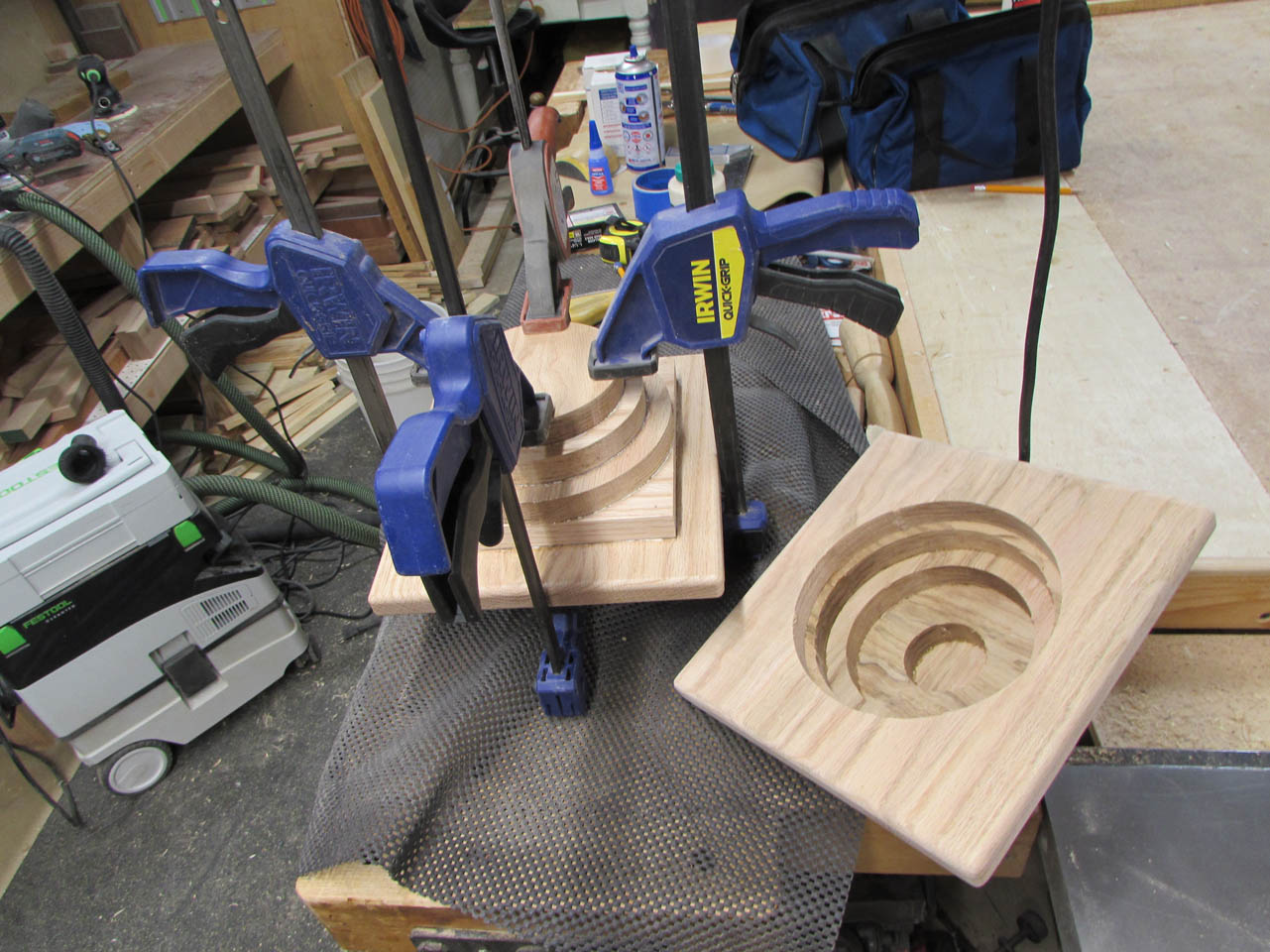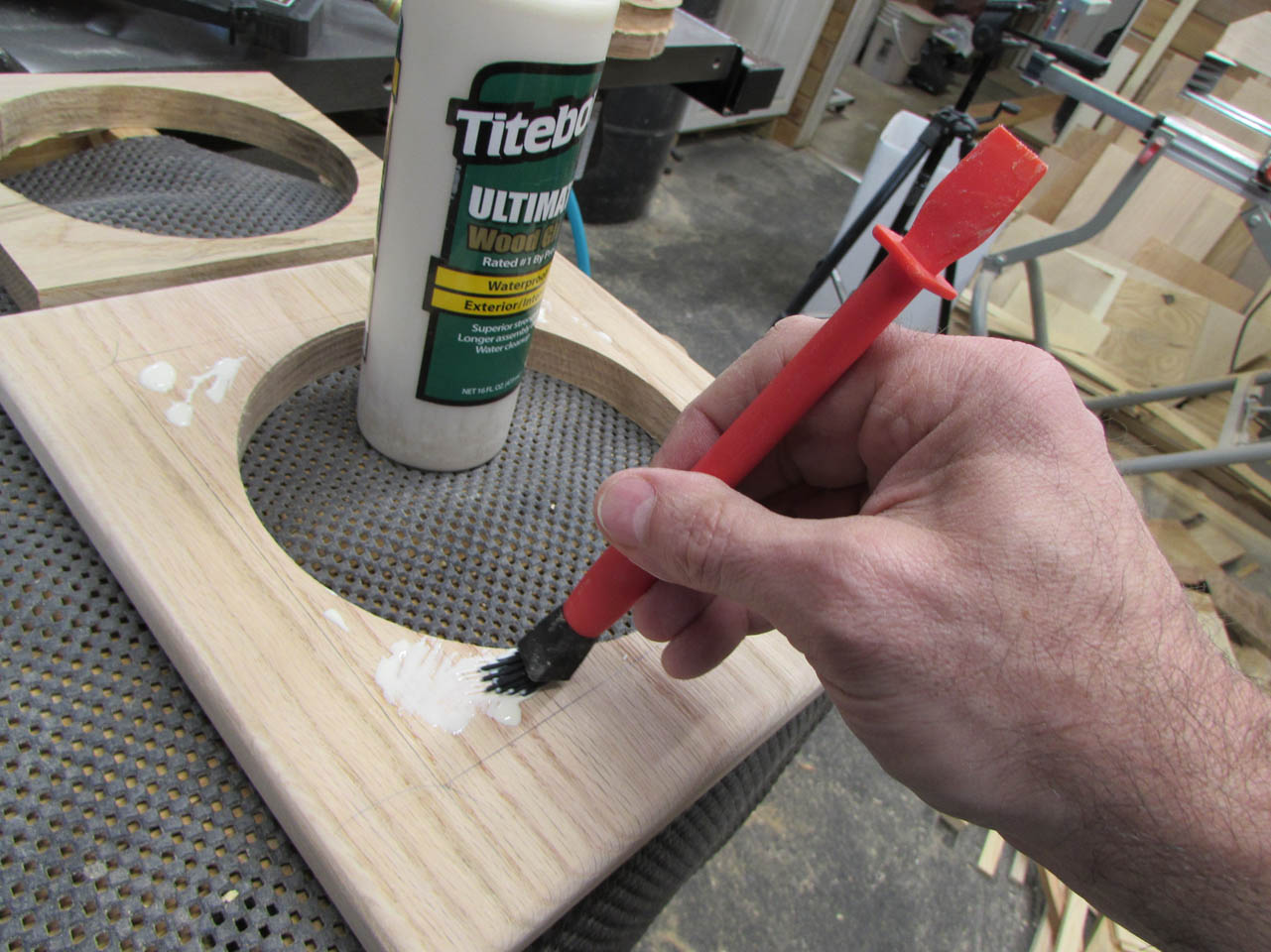 The process gets repeated for each remaining layer. Center, mark, and glue. I also decided to add a bit of stability by alternating the grain direction with each layer.