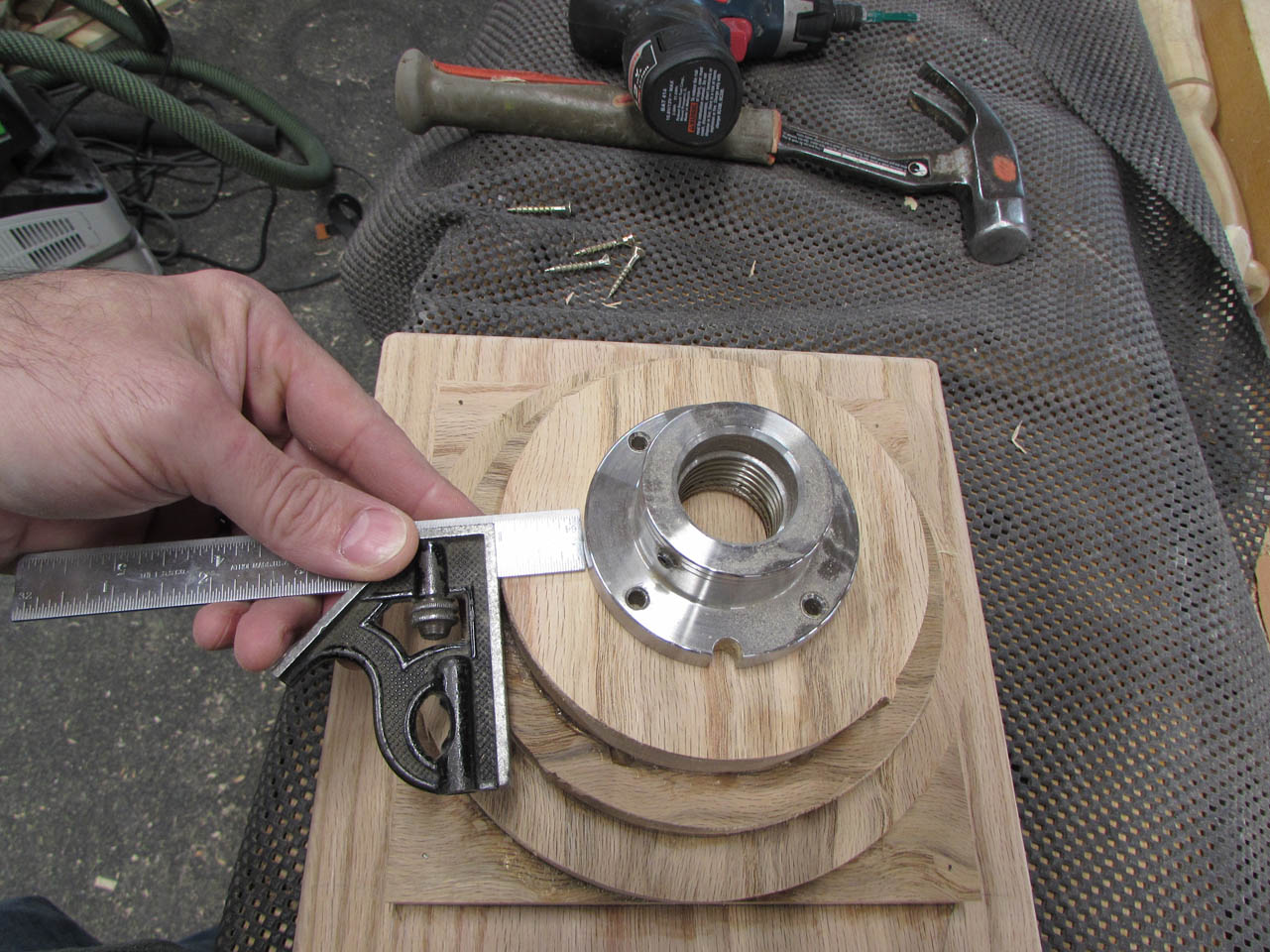 To mount these to the lathe for turning, I will be using a faceplate, centered and firmly secured with construction screws.