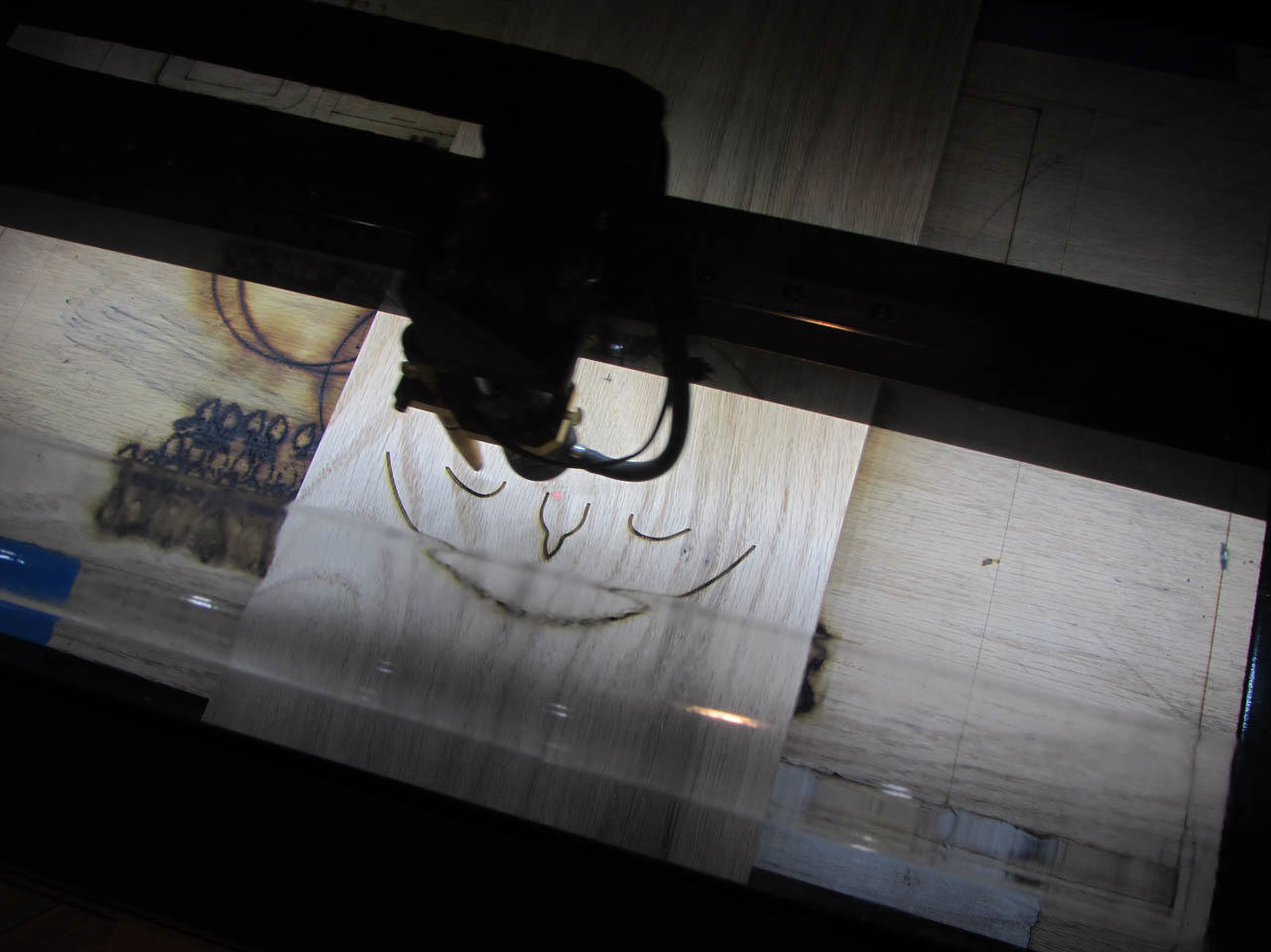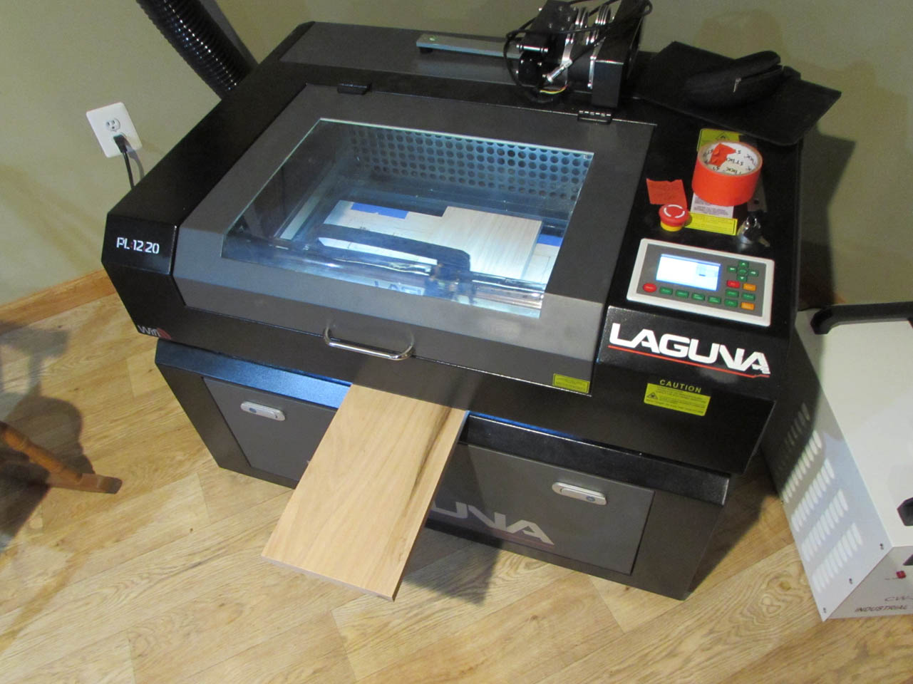 I mark the center of the board, 20″ up from the bottom, then place the board in my laser engraver, centering the laser on that point.