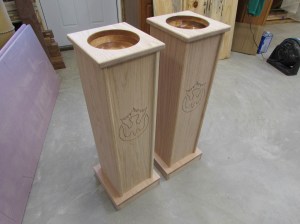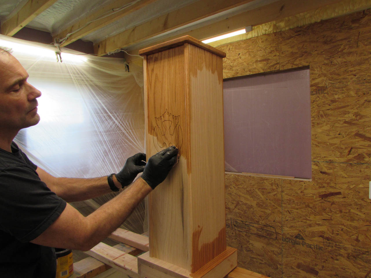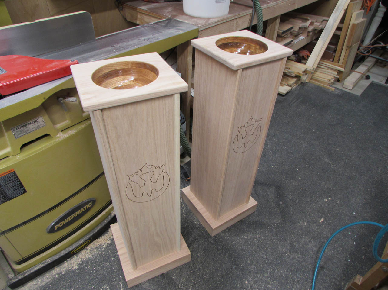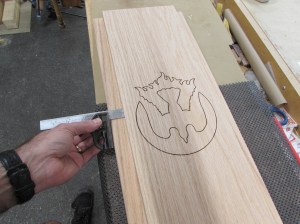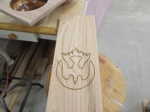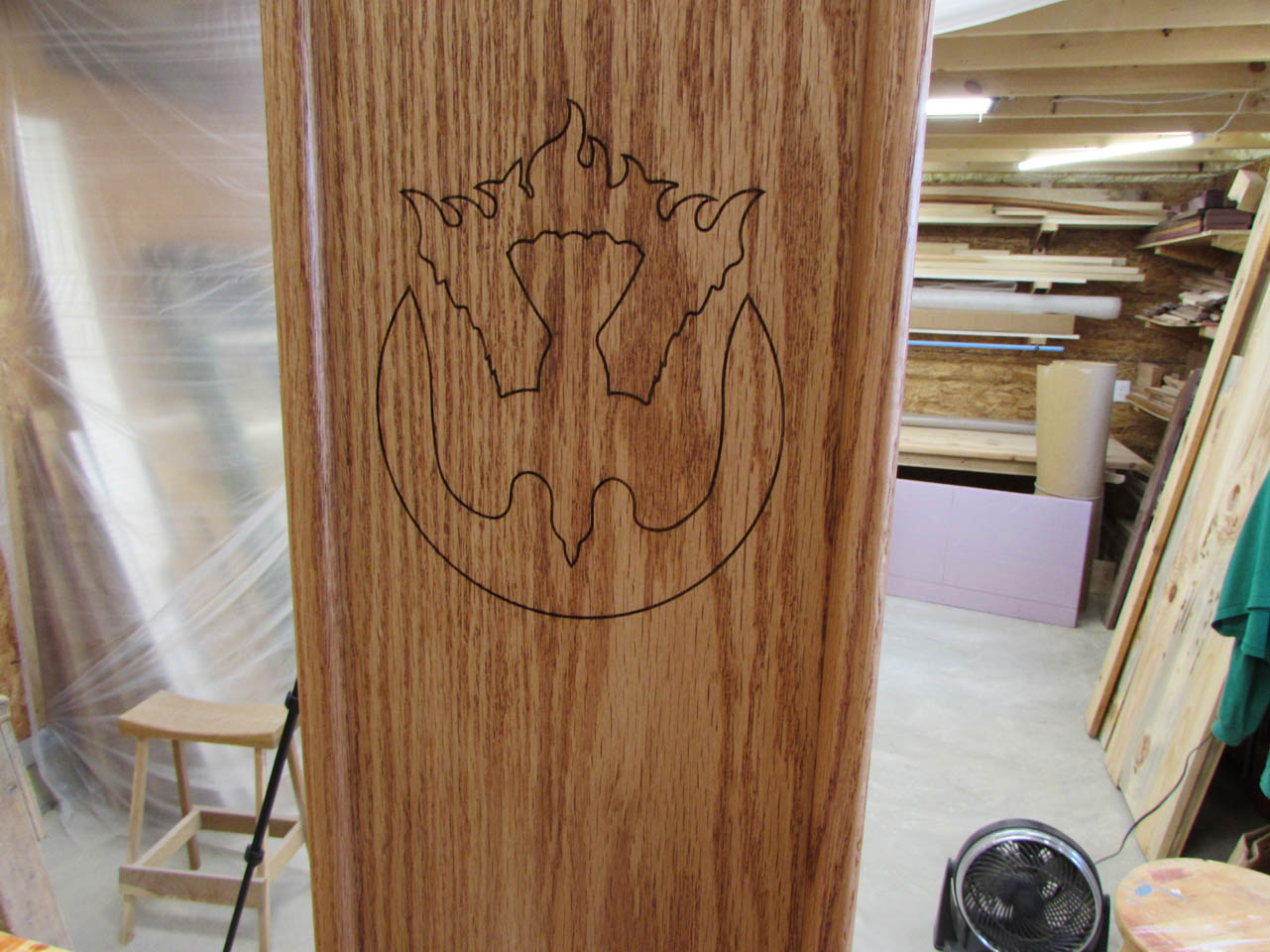 I experimented on a couple of pieces of scrap oak to get the settings and size the way I wanted it, then I engraved the holy spirit symbol onto each of the boards.