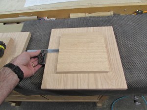To aid in locating the sides and to add an additional glue surface and attachment point, I added a 7-1/2″ square to the center of the base.