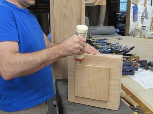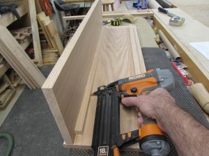 I applied glue to the 7-1/2″ alignment block and only used a couple of brad nails to hold the side in place.