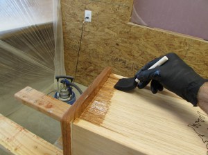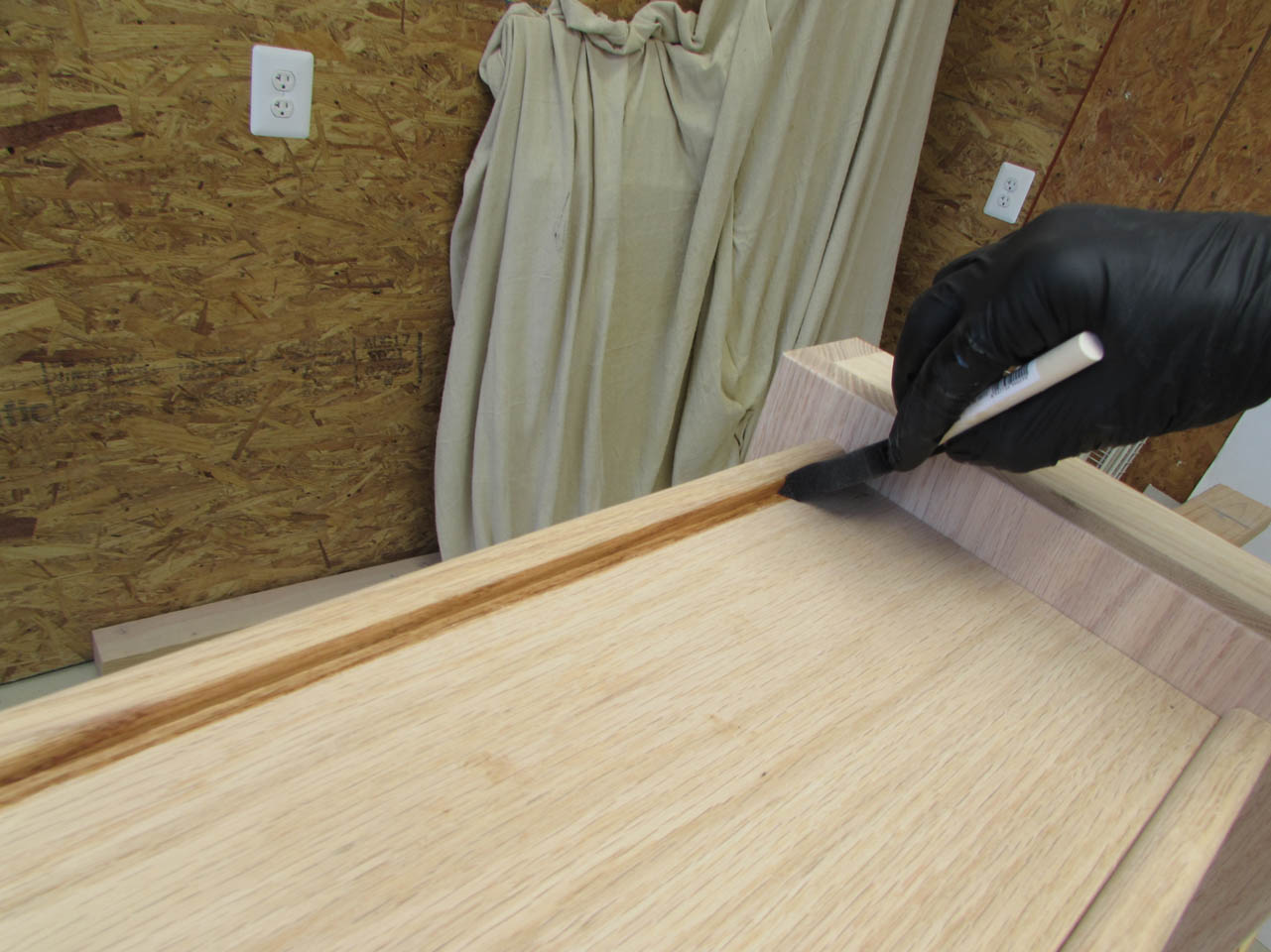 Next, onto the finish. I am applying Minwax, Cherry 235 stain, first on the top and bottom, then I do the main body.