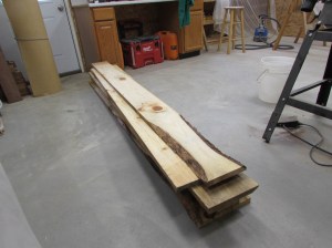 I picked through the pile and using a moisture meter, I selected several boards that were around 10%-12% moisture content. I left the rest stickered and stacked on the covered porch so that the breezes outside would continue to dry out the remaining boards.