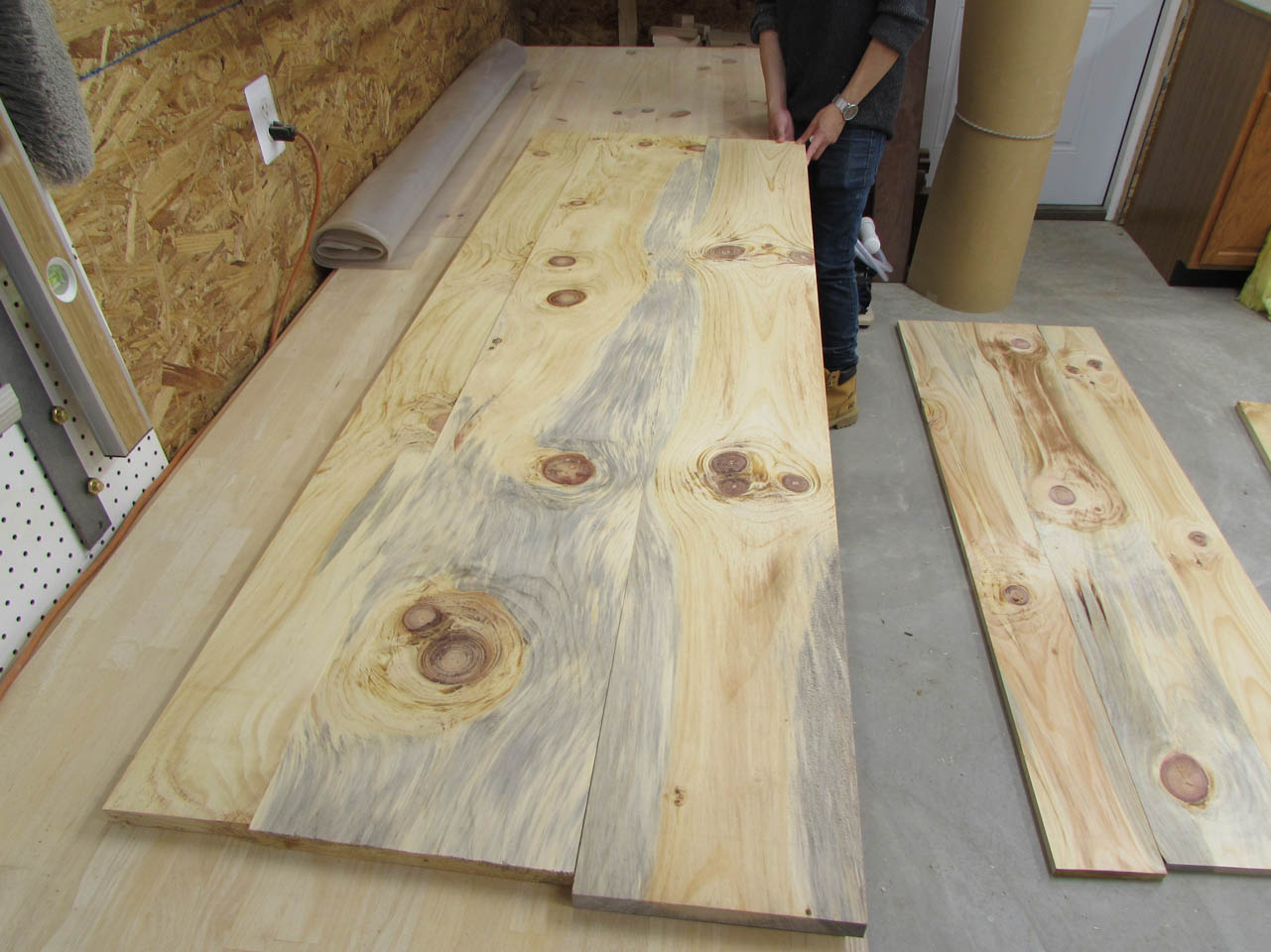 I also had a word with my buddy Dave about the gummed up paper problem and he suggested starting with 60-grit paper and working down to 120 grit. Even though the boards were already smooth, it seems to handle the the gummy mess better and by the time you get down to 120 grit it doesn’t seem to clog the paper as much. Learn something new every day…