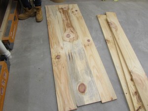 These boards were originally rough-planed down to 1″ thick but they have a few saw marks and dirt on them still. We took another pass off each side through the planer to clean the surfaces up.