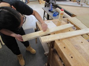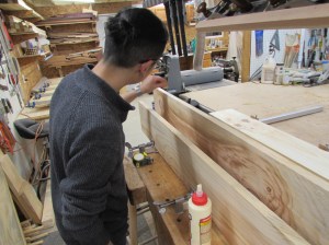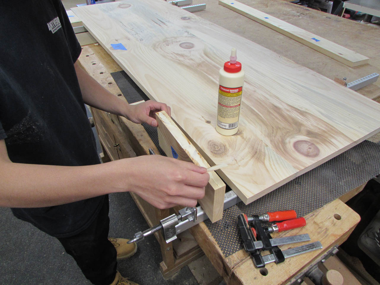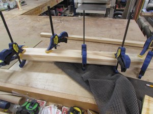 We worked together to get glue spread across all the joining edges so that none of it started drying out before we could get it all clamped up.