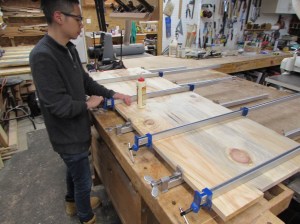 Raphael picked through the boards and matched up the grain, then we started gluing the panels up.