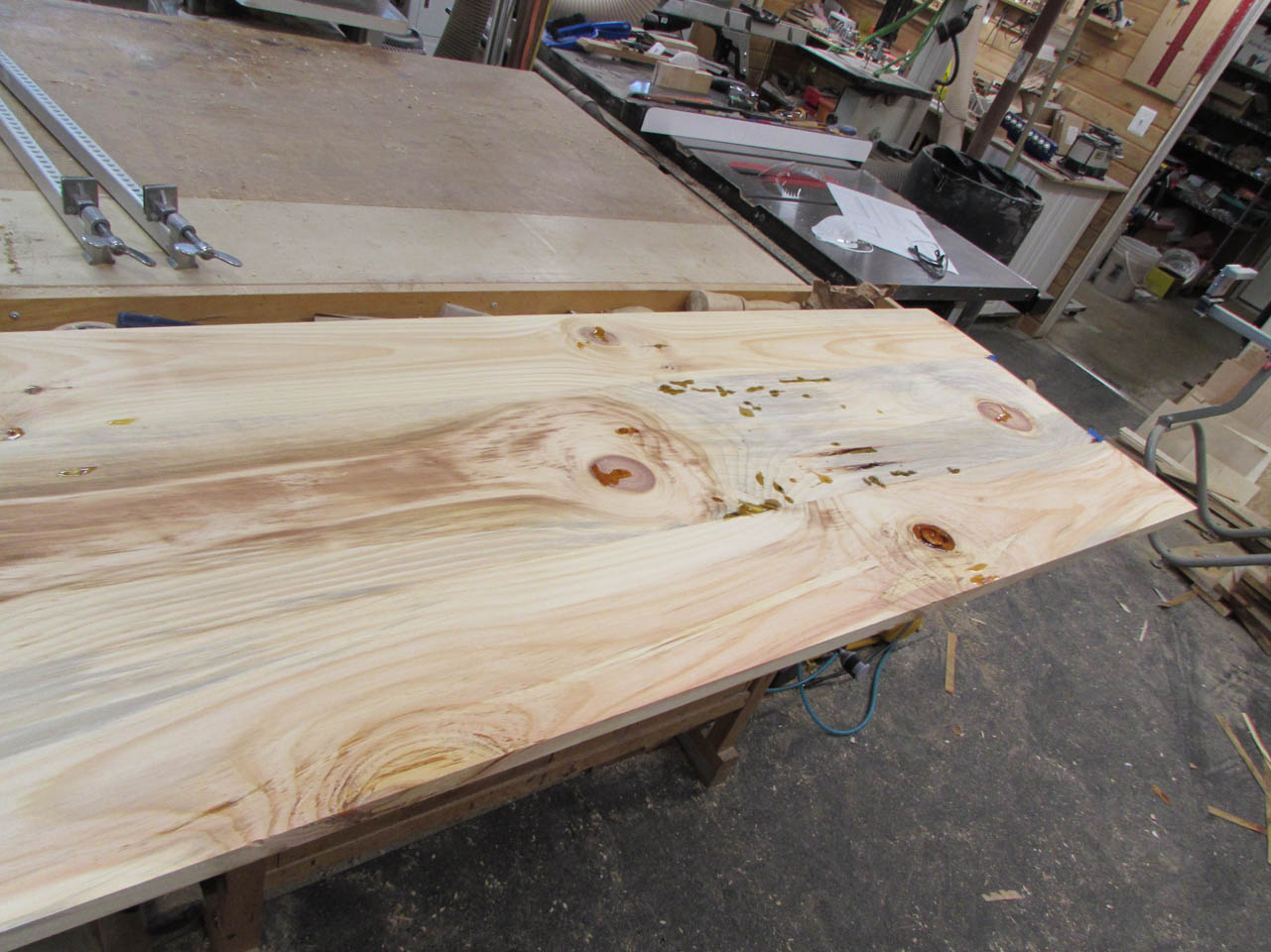 Pine is a soft wood and I would not recommend it for a writing desk, but this will mainly be used for computers so the softer wood should not be a problem. Since the wood is air-dried, the boards did not go through the normal kiln-drying process that would typically dry out the wood and kill any bugs that may be still alive.