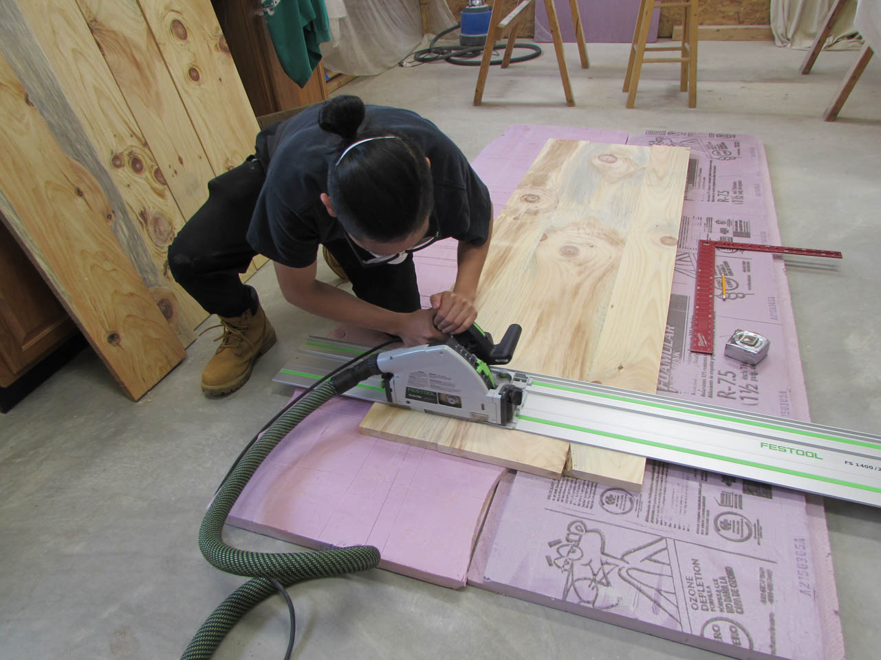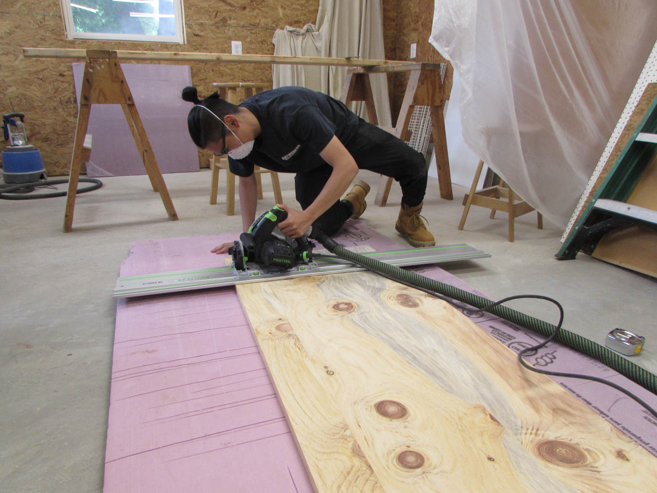Once the boards were ready, Raphael came over and got to work cutting them down.