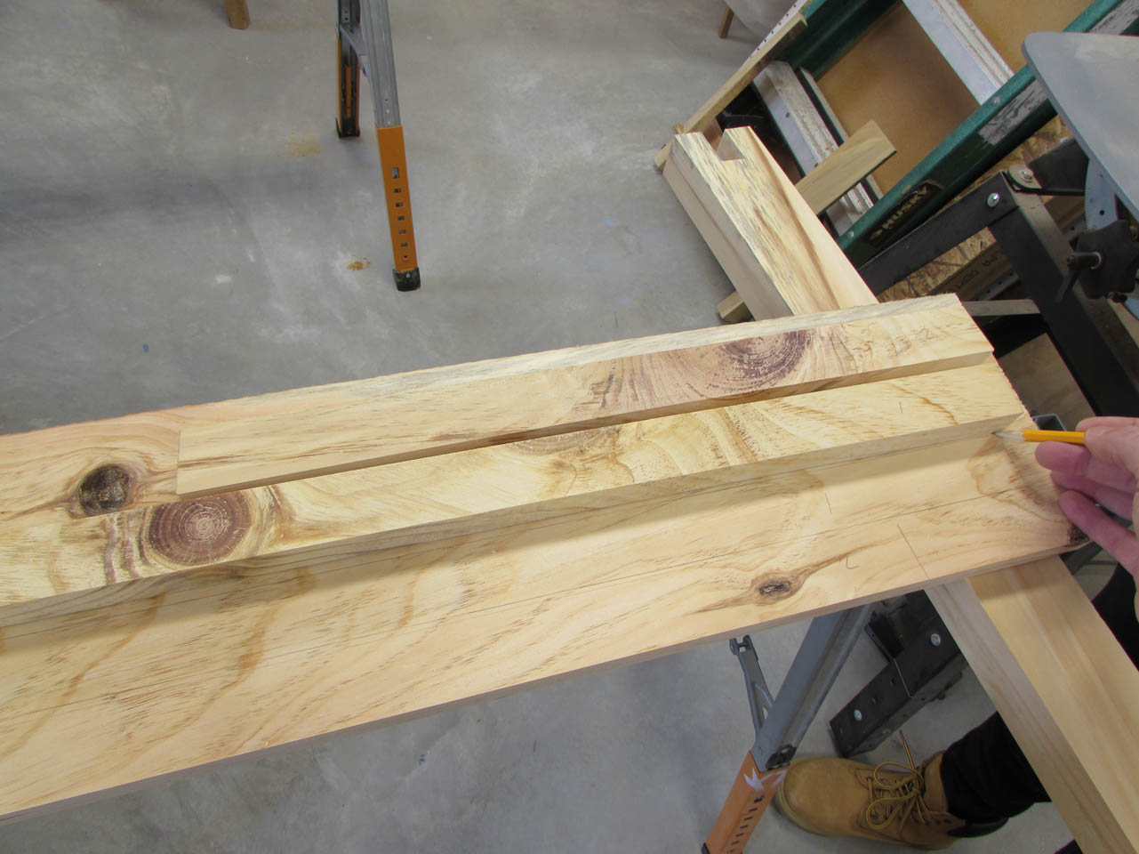 The verticals are 3″ wide and 1-1/2″ thick. This means that we have to glue two pieces of 3/4″ thick boards together.