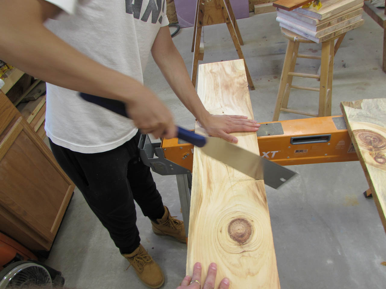 This board was broken part way through so Raphael used a hand saw to separate the broken end.