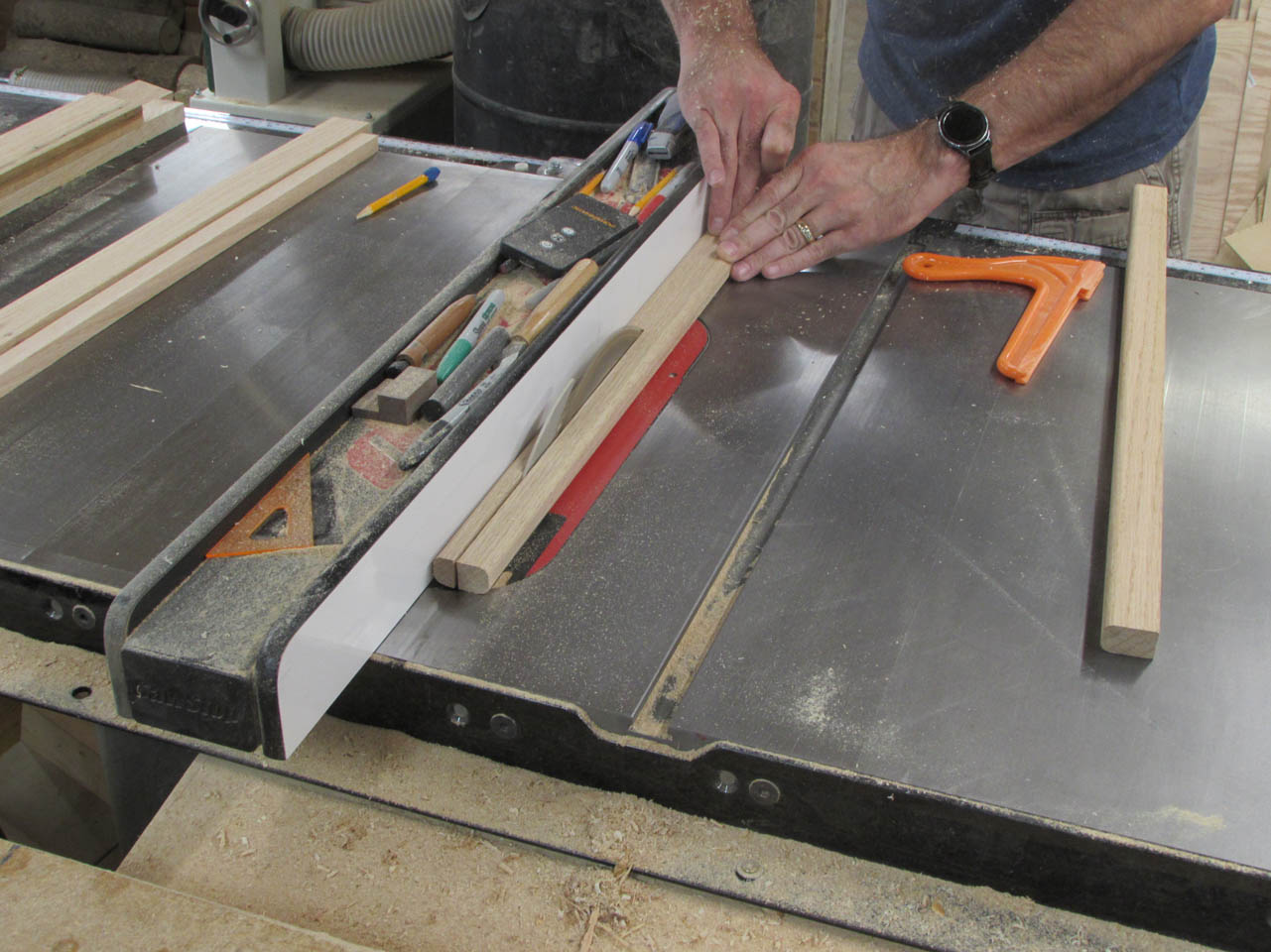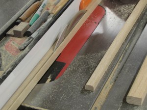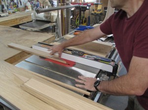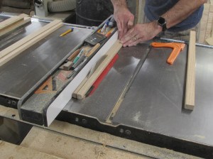 Once they are all squared up and cut to length, I can rip them to their final width on the table saw.