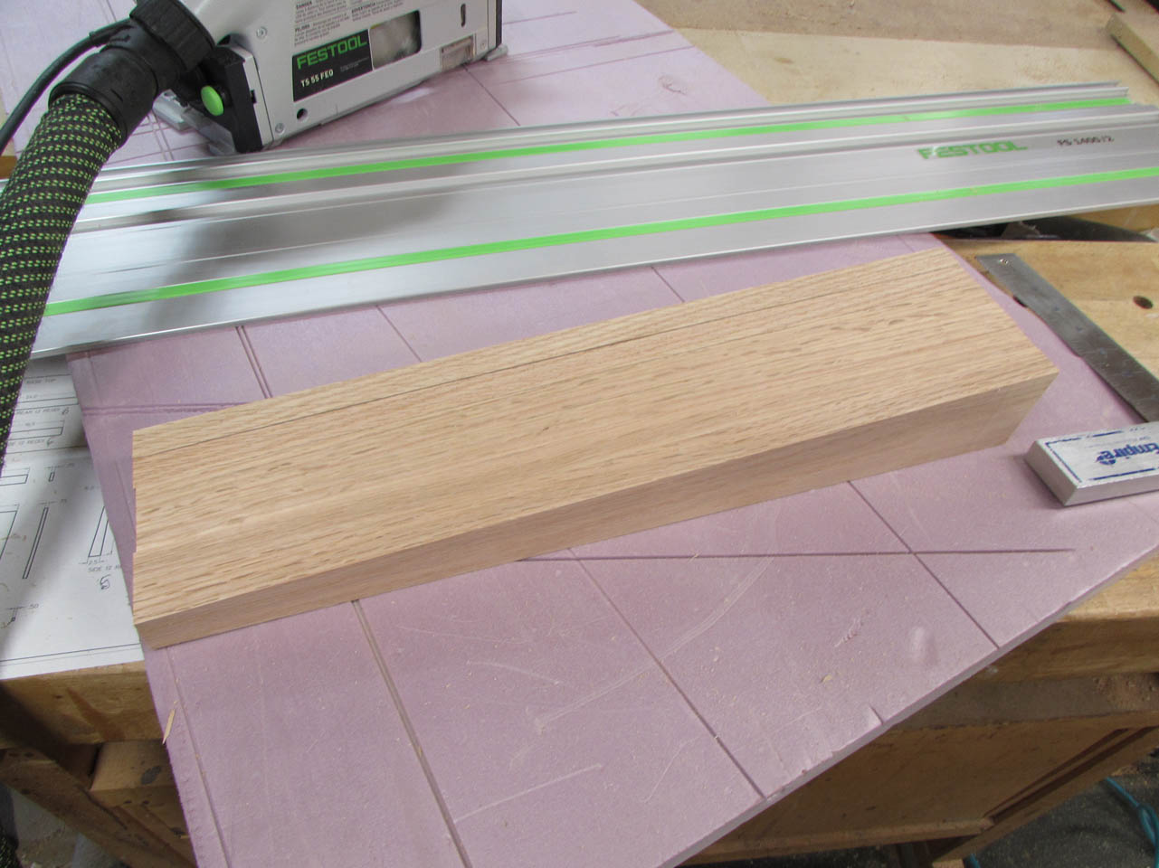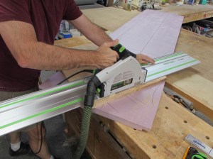 Since I have the track saw still out and set up, I am now going to cut down the larger panels that will make up the top, base, and the laptop shelf.