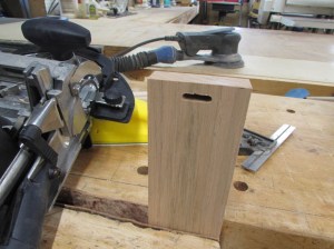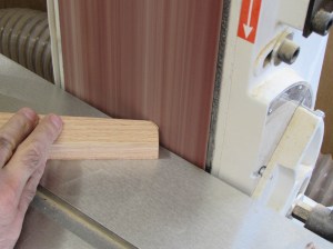 I took the pieces over to my 6″ wide belt sander and carefully sanded the sharp corner away until I had my radius.