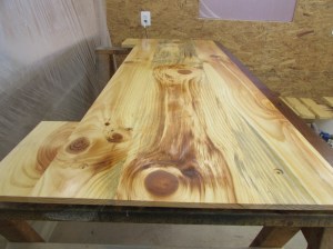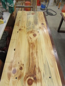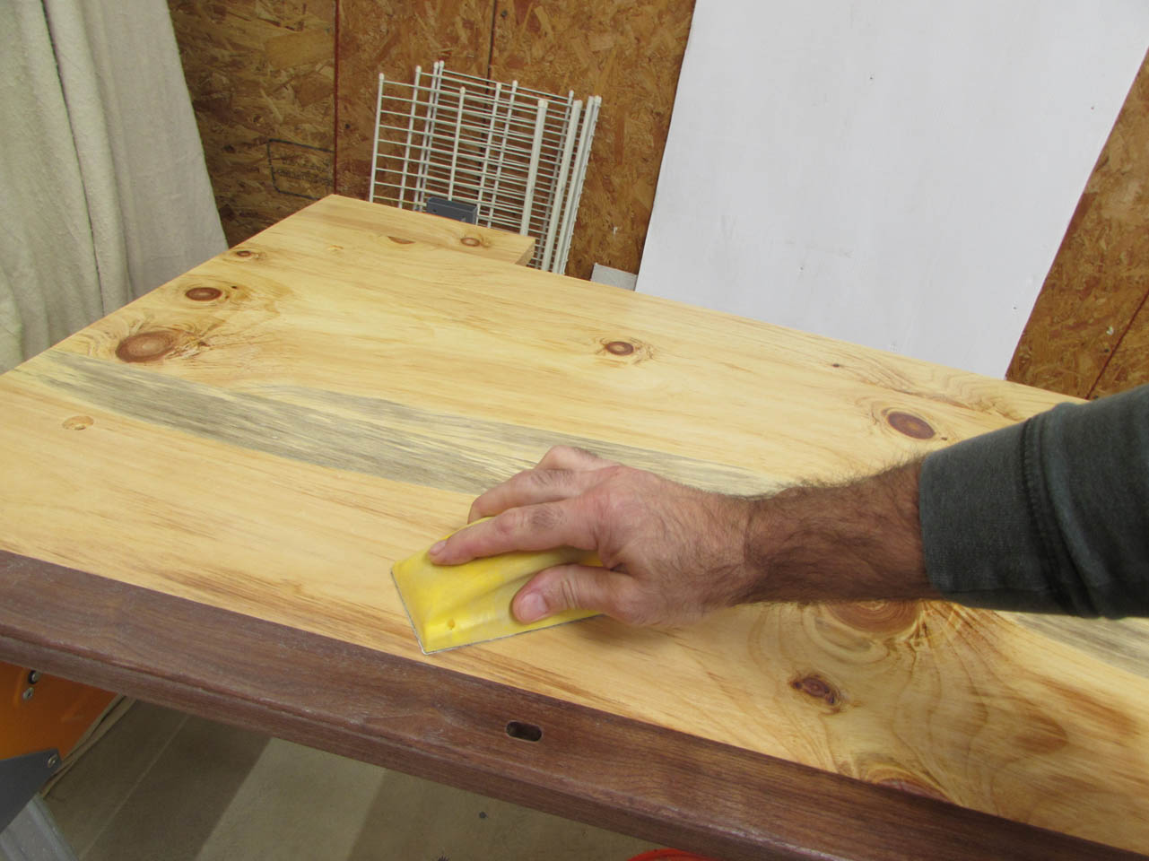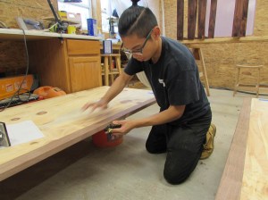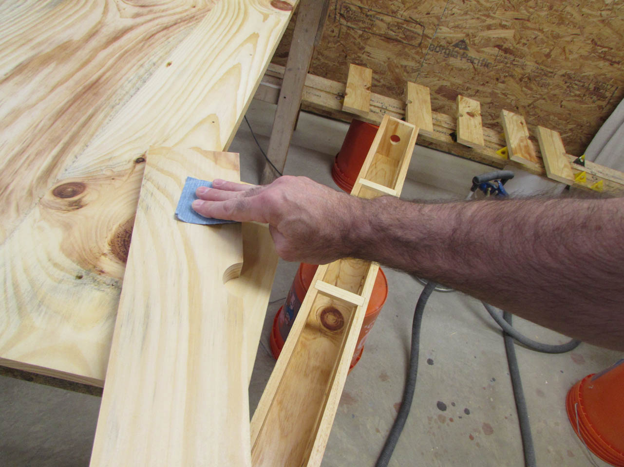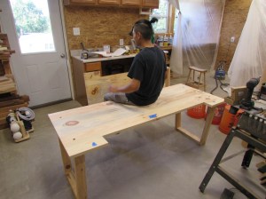 While the legs were drying, I started sanding the nosing perfectly flush to the top of the desk.