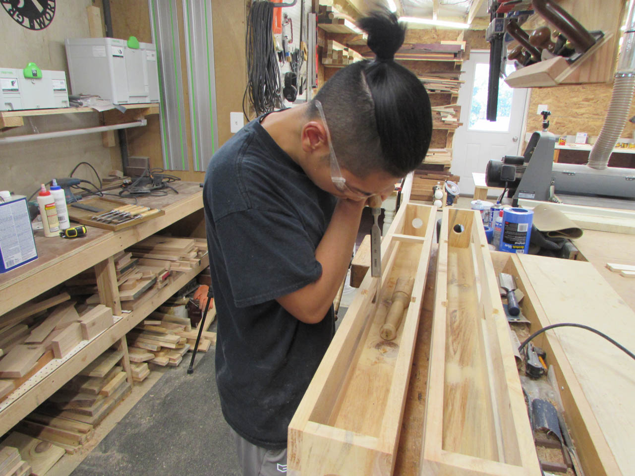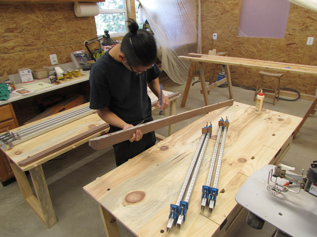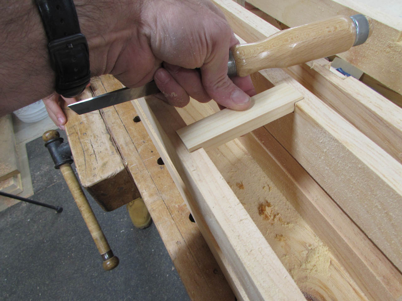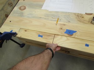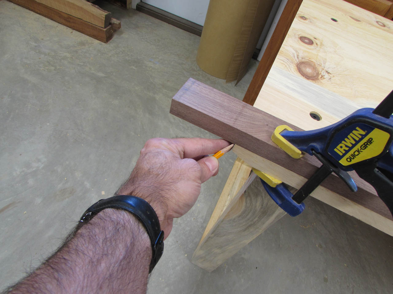 While it was attached, we marked the tapered ends so we could match the angle on the walnut.