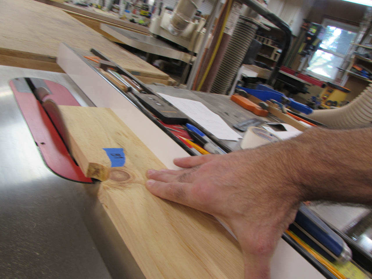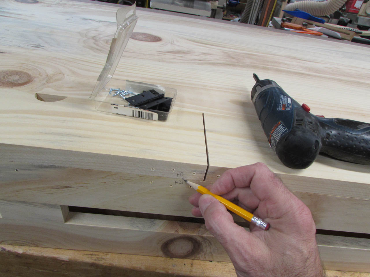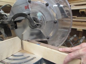 We want the doors to be grain matched so we will cut them from the marked piece of wood that was left over from cutting the two back corner pieces.