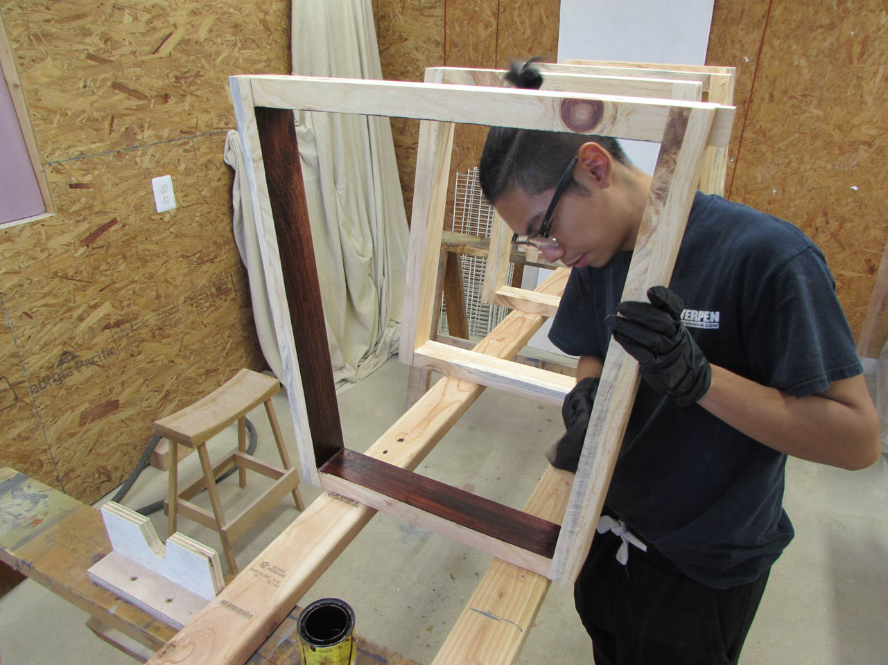 Raphael decided that he wanted the legs to match the color of the nosing so he applied a stain to them.