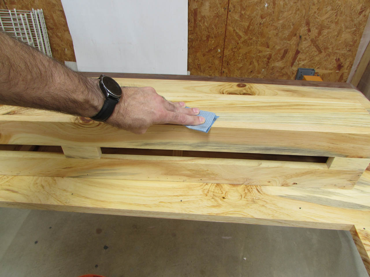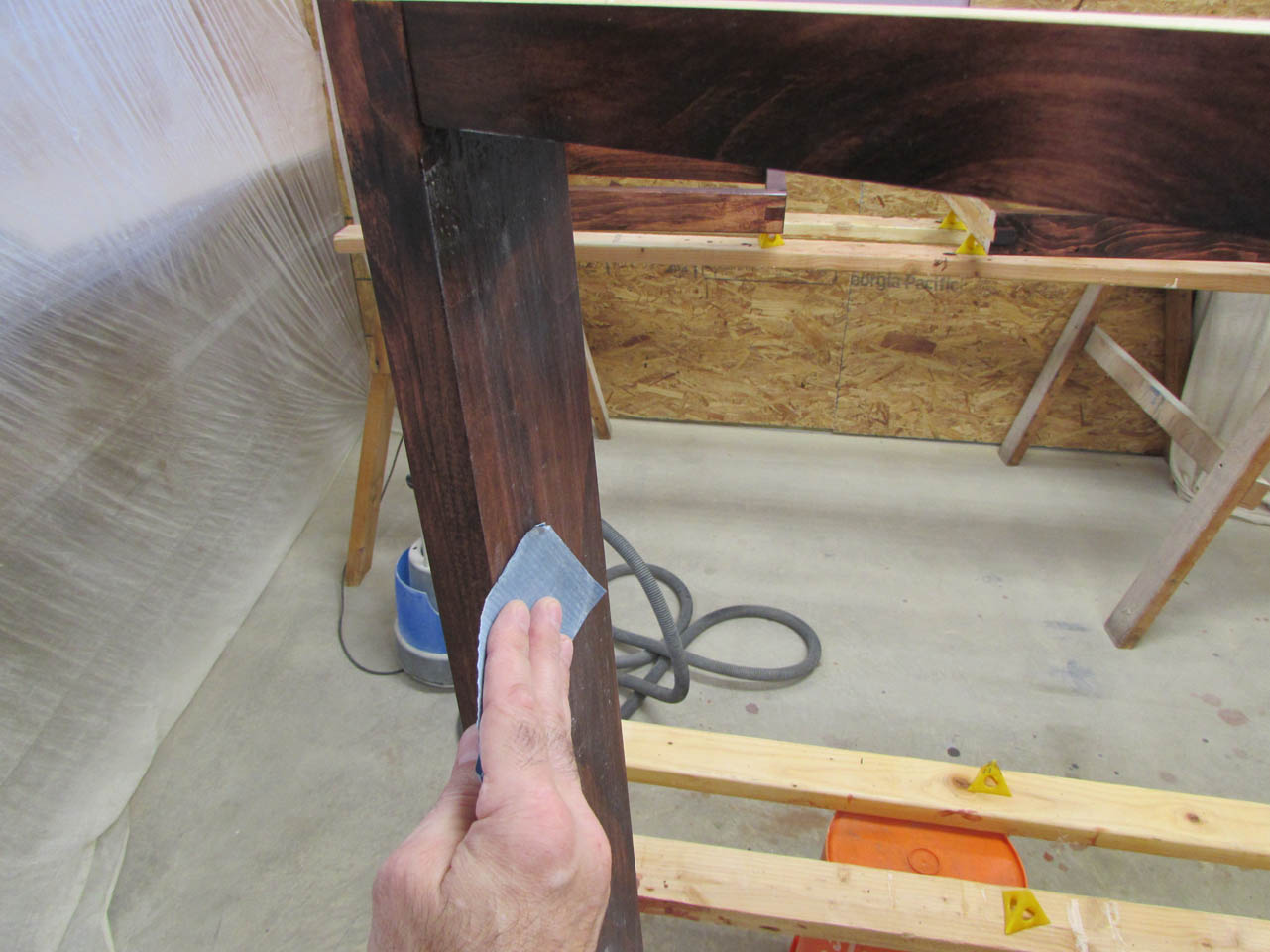 Bouncing back to the legs, when they were dry, I sanded them all down with 400 grit paper and applied a second coat of polyurethane.