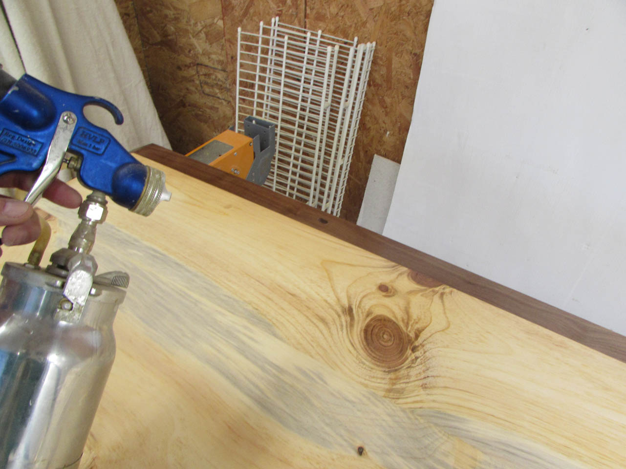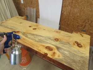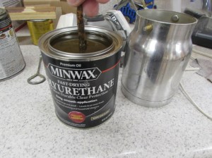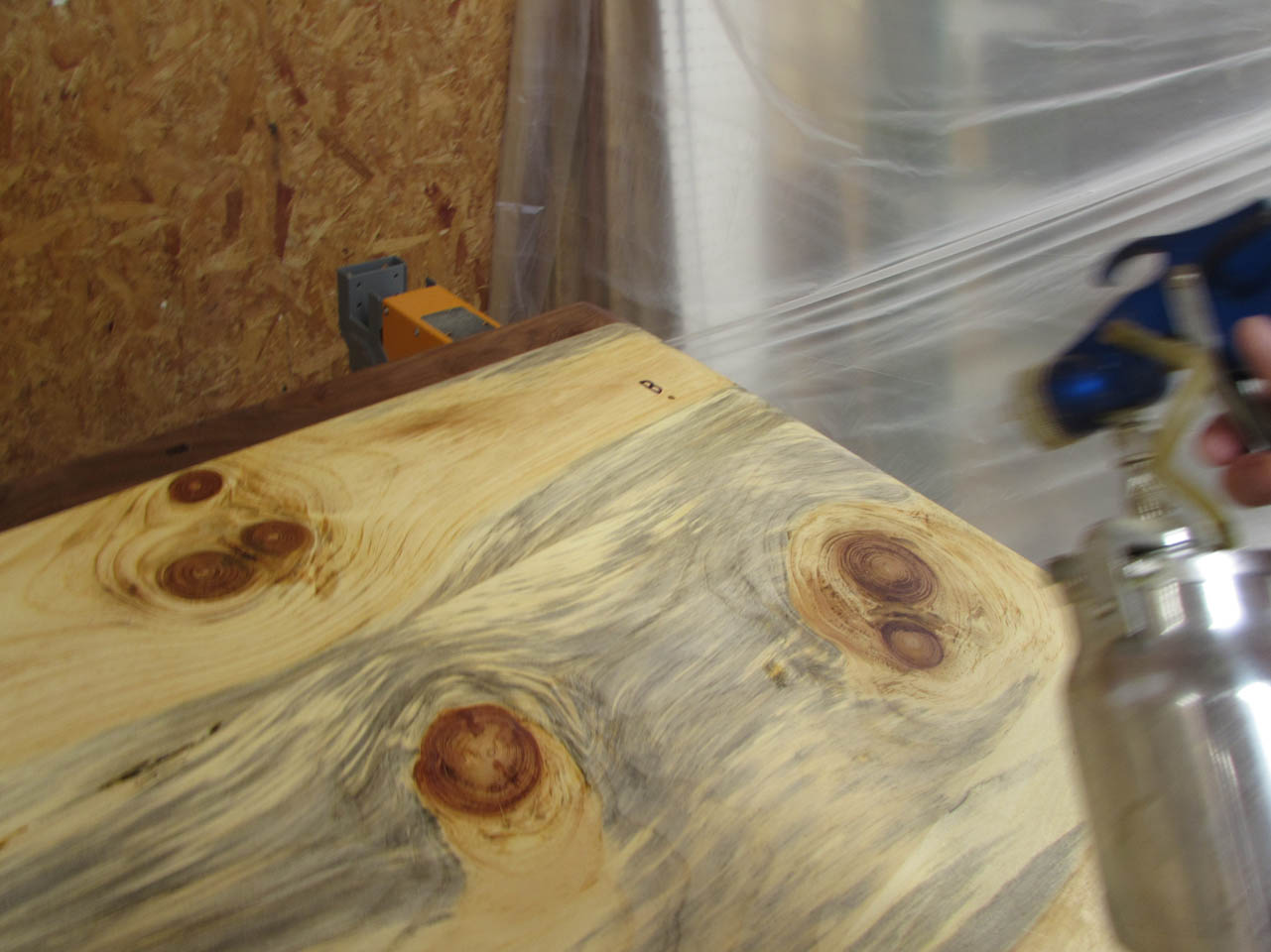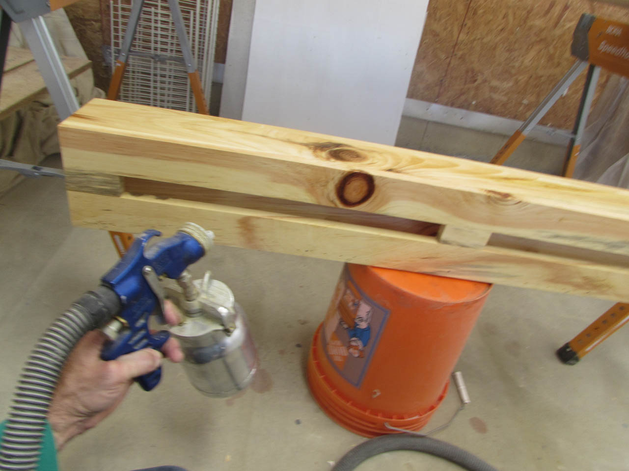 Before spraying, I placed a small piece of tape over the threaded inserts. Threads can get gummed up easily with polyurethane.