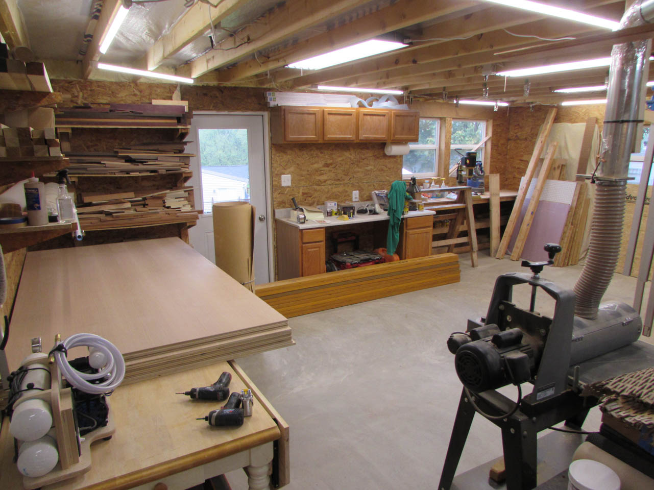 With the structure up, I took a trip to the mill to pick up some oak and maple for the shelf, trim, and stair treads.