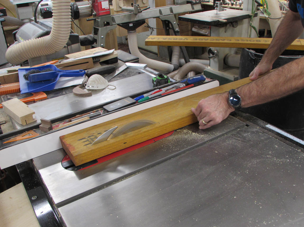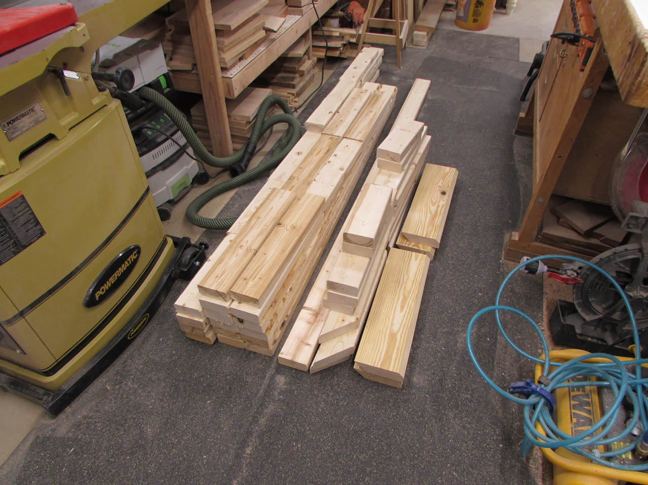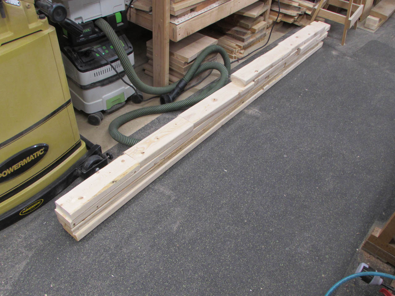 Ganging the wood together, when I could, to ensure the exact same dimension for boards that would be duplicated.