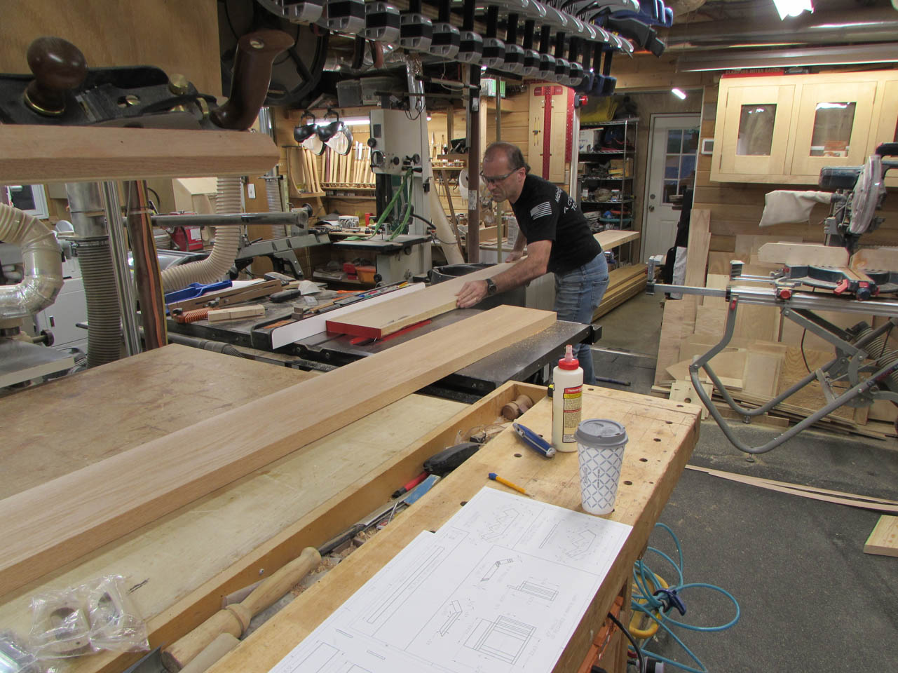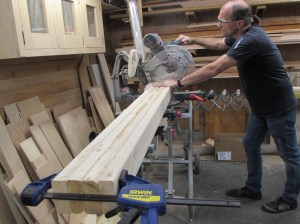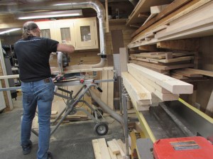 Since the boards are so large, I had them planed down at the mill and one side straight-line cut so that I could easily trim them down to size in my shop.