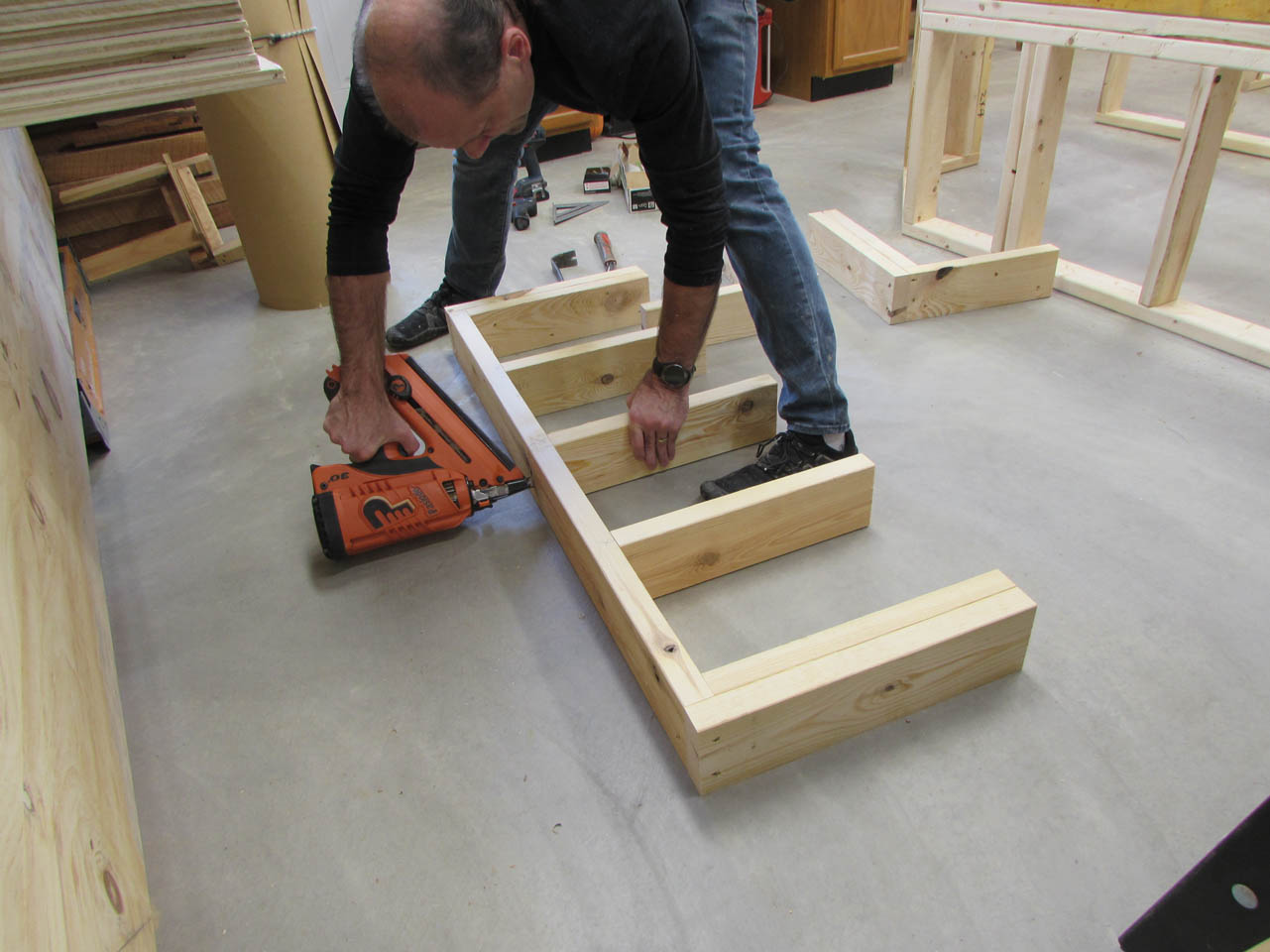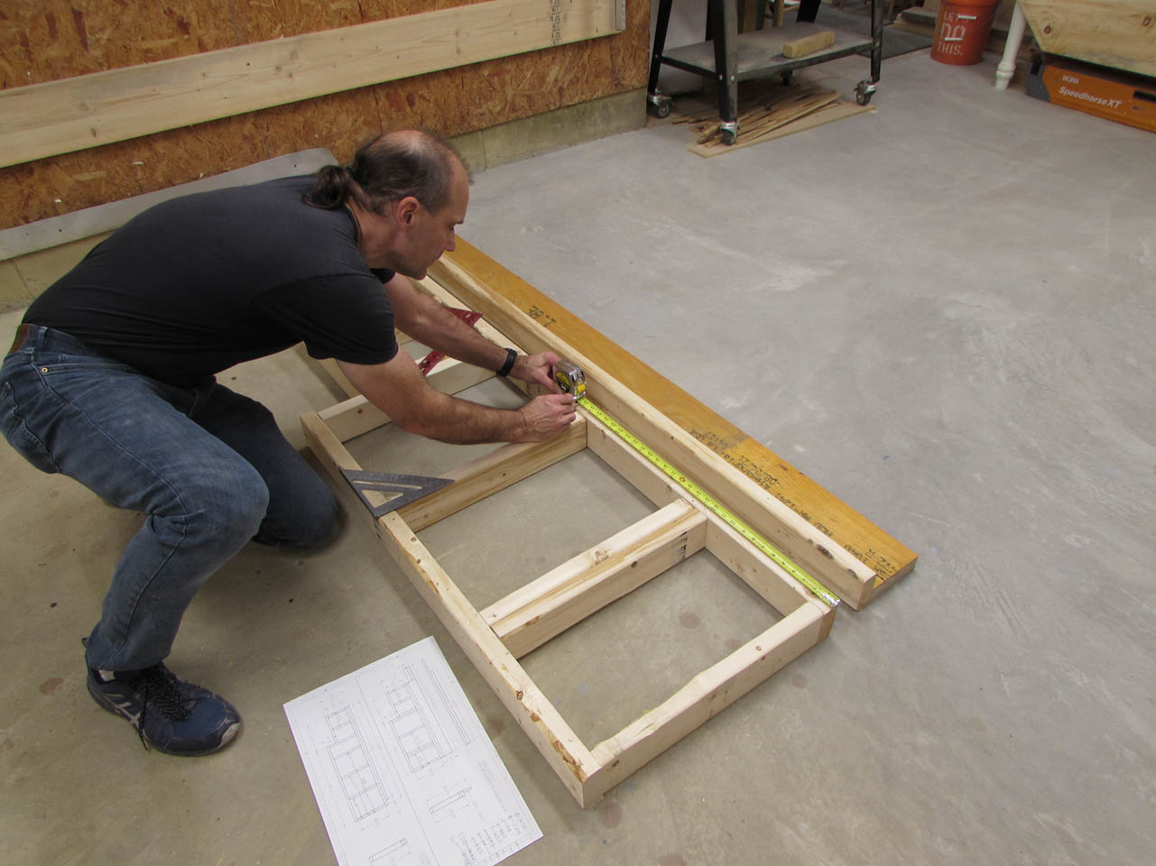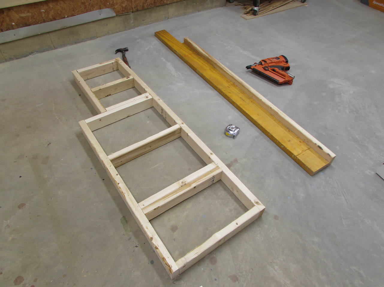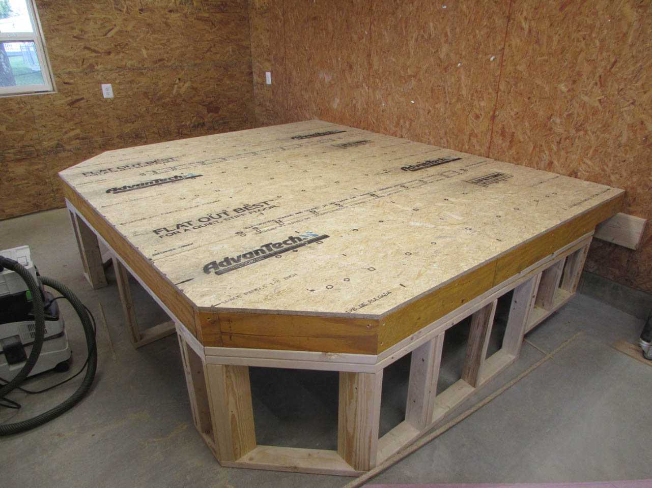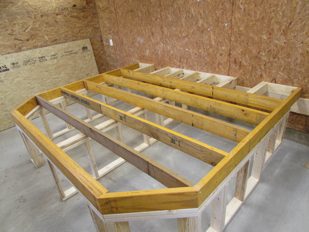 And, here is the base. I used two tape measures to square up the assembly before attaching the sub-floor.