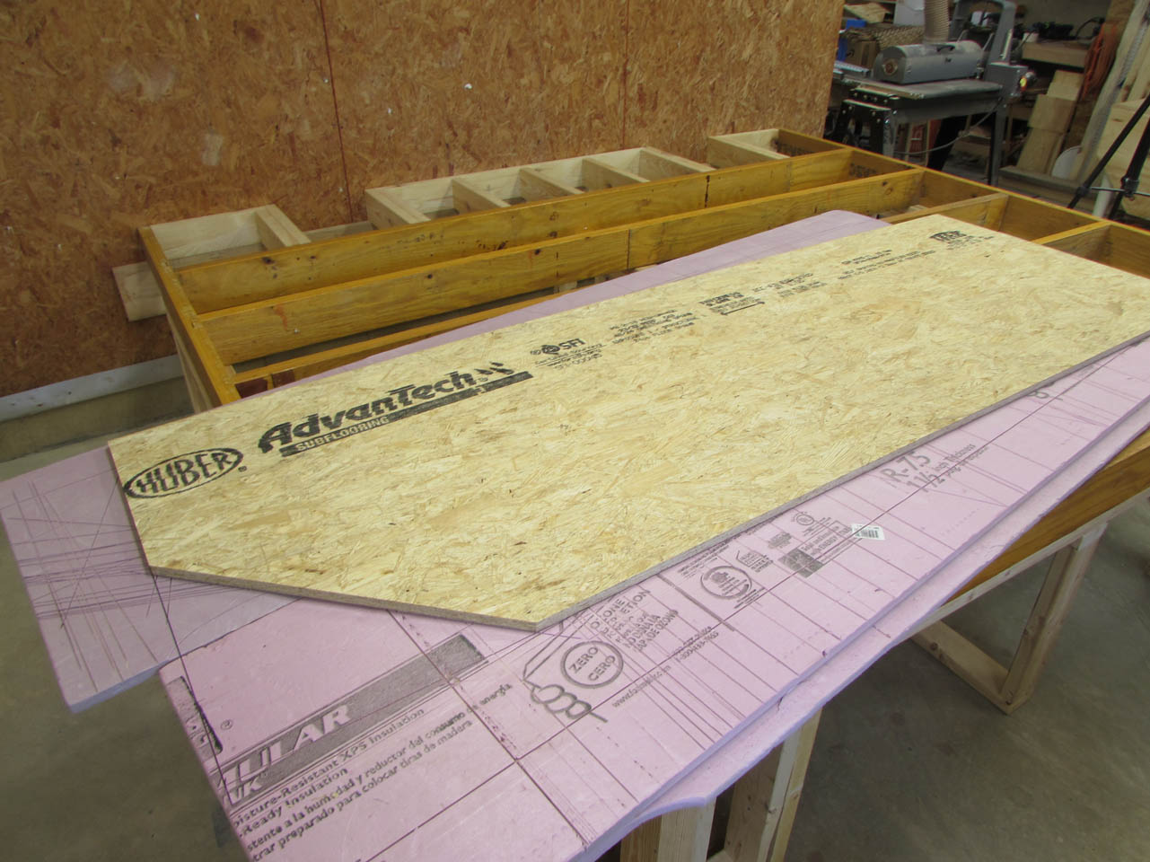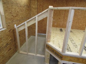 On the 45° walls, I used 2″x6″ studs to create the angled sides.