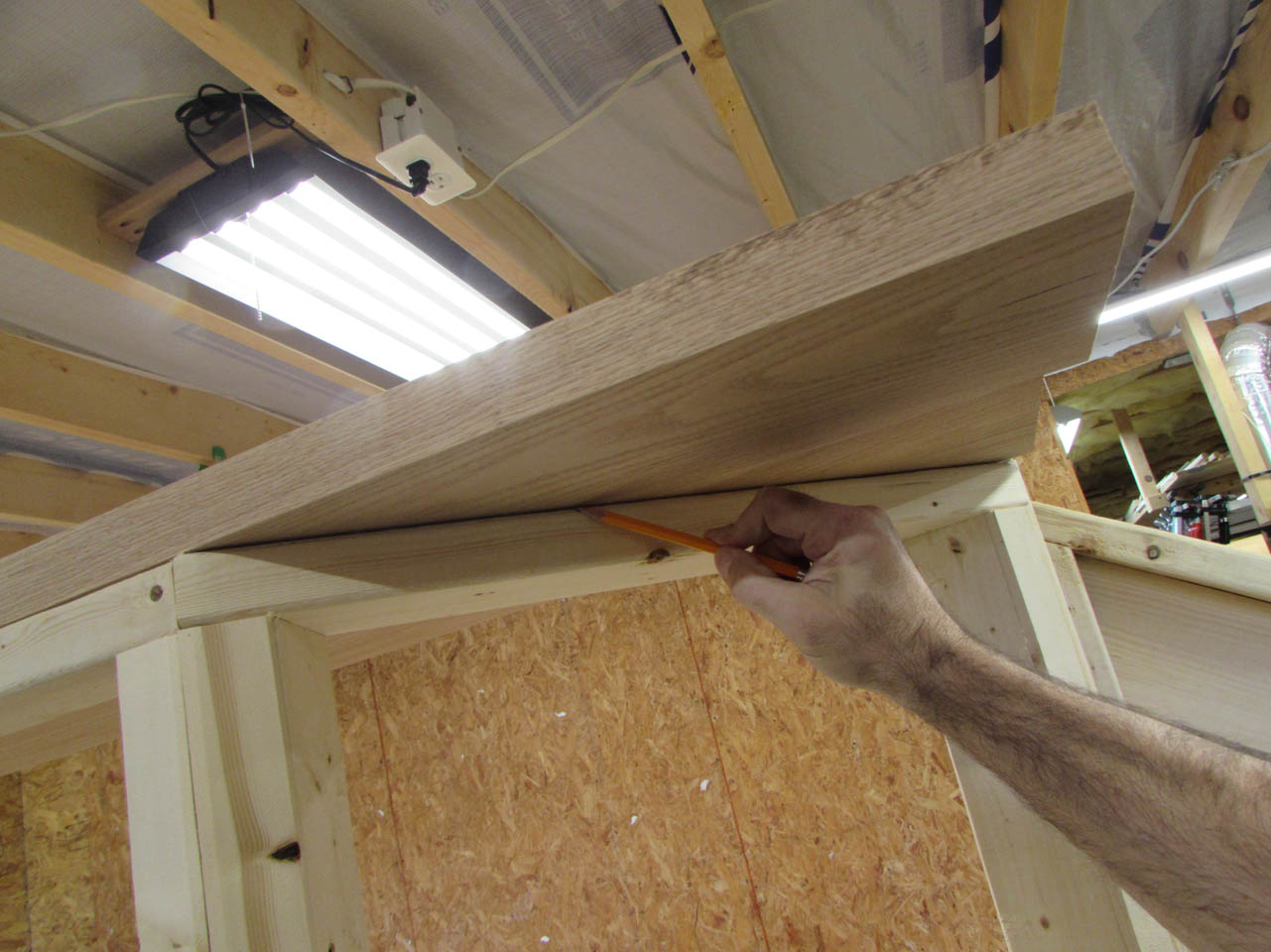 I set the very heavy shelf in place so that I could mark the ends for cutting.