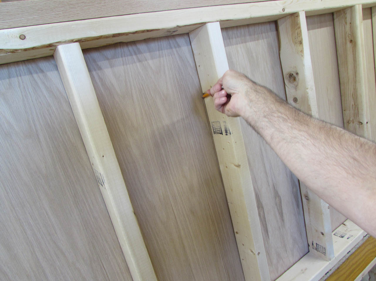 I set the first two panels in place, then marked the locations of the framing on the back side.