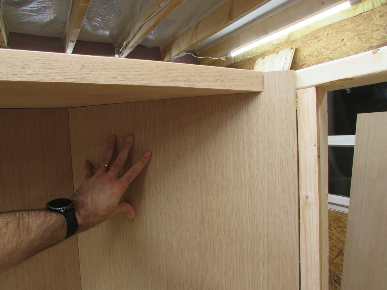 Moving on to the rift-sawn oak plywood that will be installed along all of the wall surfaces.