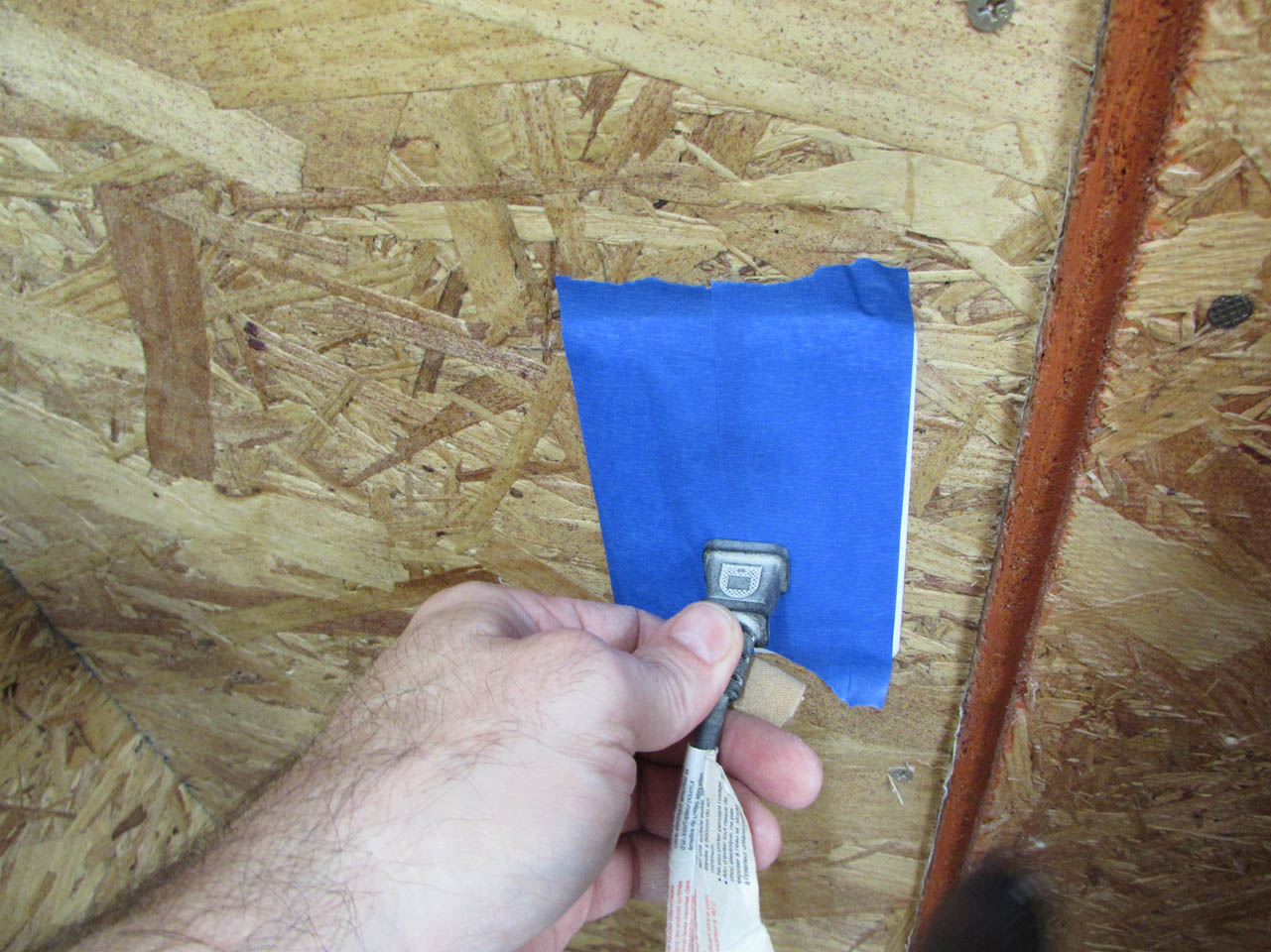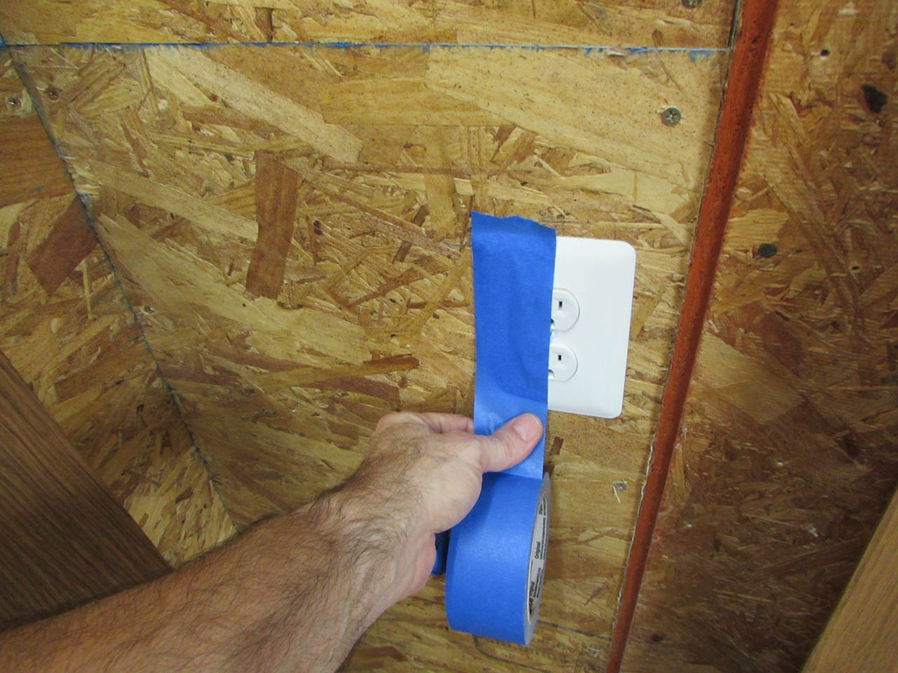 Then I taped over all the outlets in the area to keep out any sprayed polyurethane. I can still plug the sprayer in through the tape.