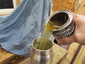 When I was done, there was a thick fog of polyurethane in the air. I turned on my air-cleaner and left the shop so the air could become breathable again.