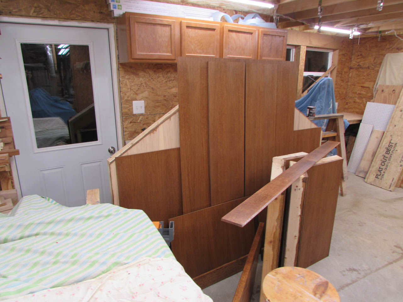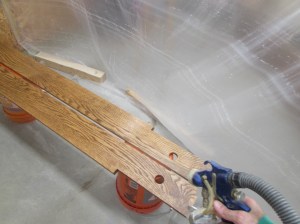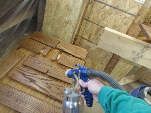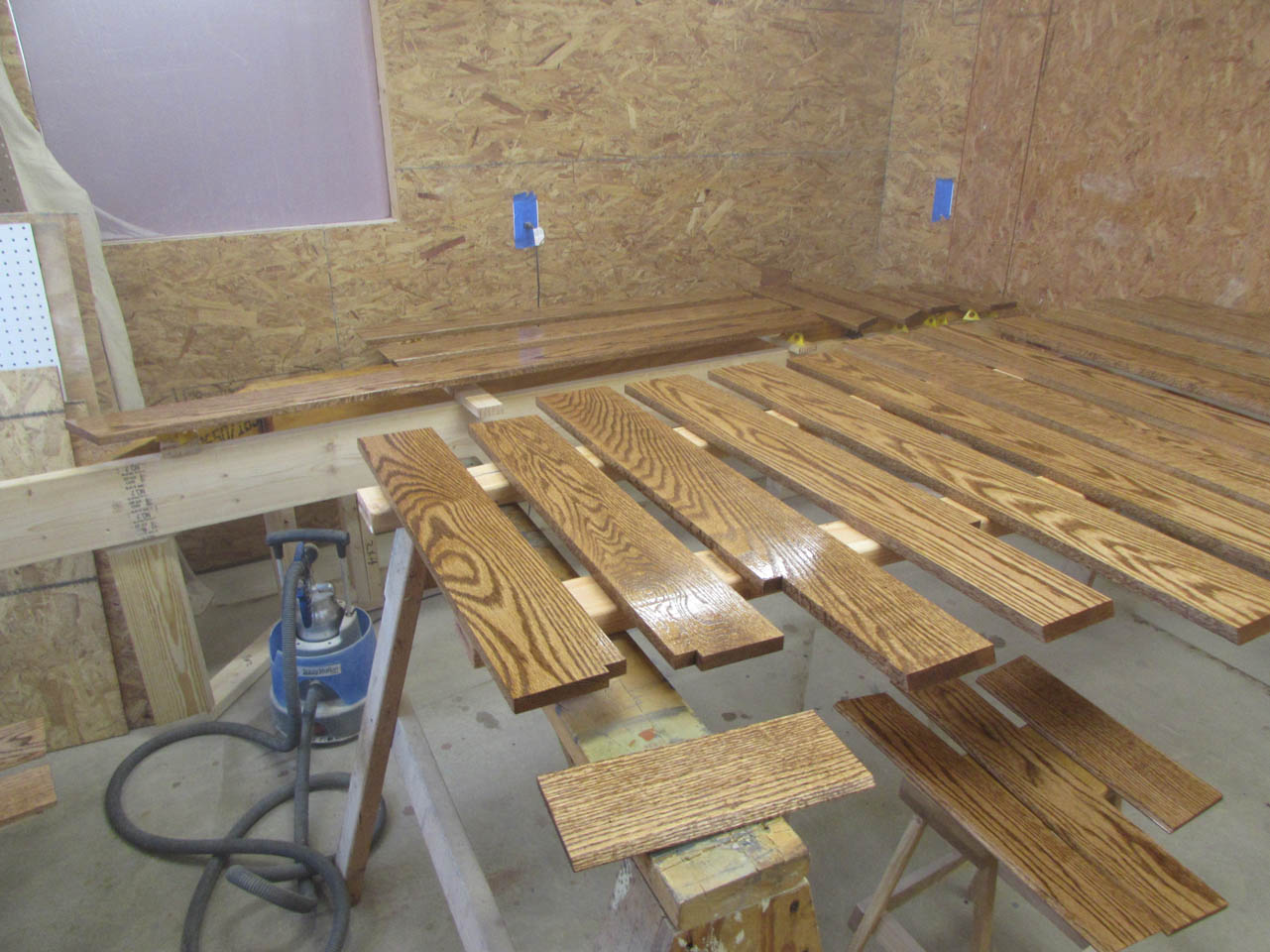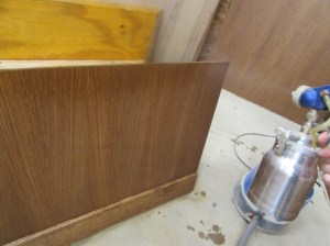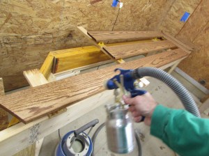 The next day, I took all of the dry panels and moved them out of the way so that I could set up the spray booth again and spray the finish on all of the trim.