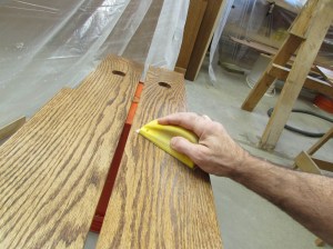 The next morning, I started sanding. I sanded each finished surface with 400 grit sandpaper, and wiped them down afterwards.