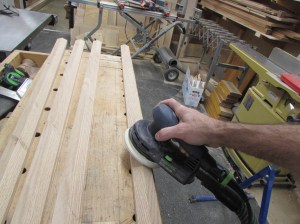 Then I used a small sanding block to hand-sand the 1/8″ thick edges.