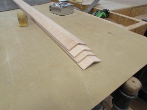 This gives me a handy table to place some of my trim on for spraying. All of these parts will have both sides sprayed so I placed them face down on painter’s pyramids. When I spray them, I can flip them over and spray the opposite side at the same time. This will cut my finishing time in half.