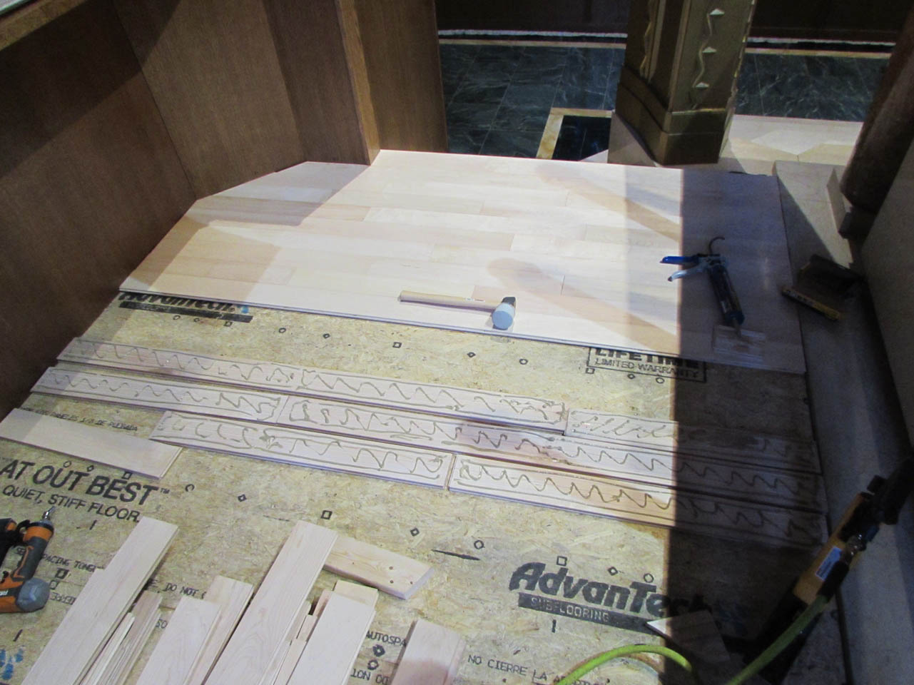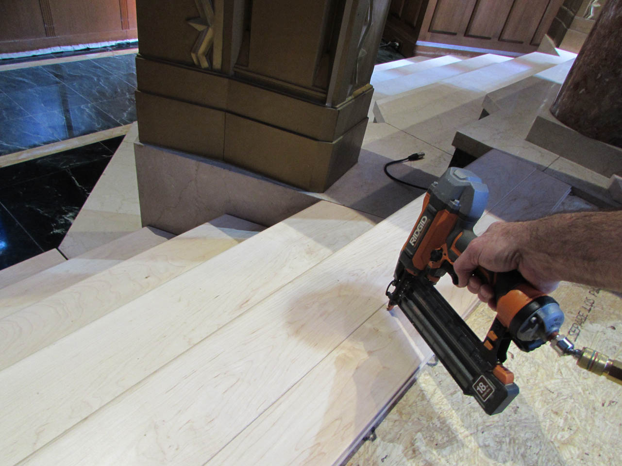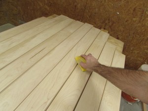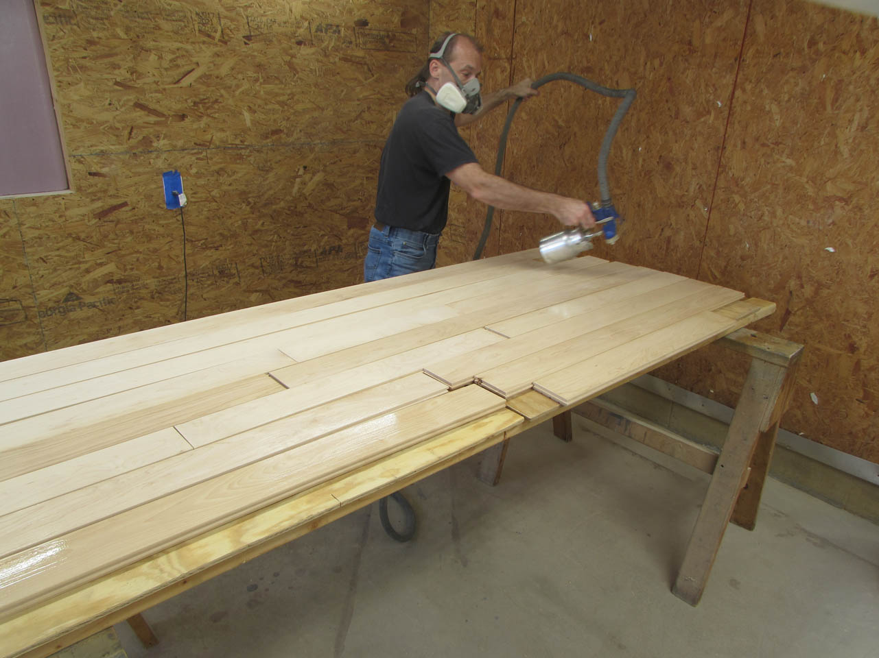 I am going to pre-finish the flooring so that I can install it in one day and not have a significant mess and fumes at the cathedral.