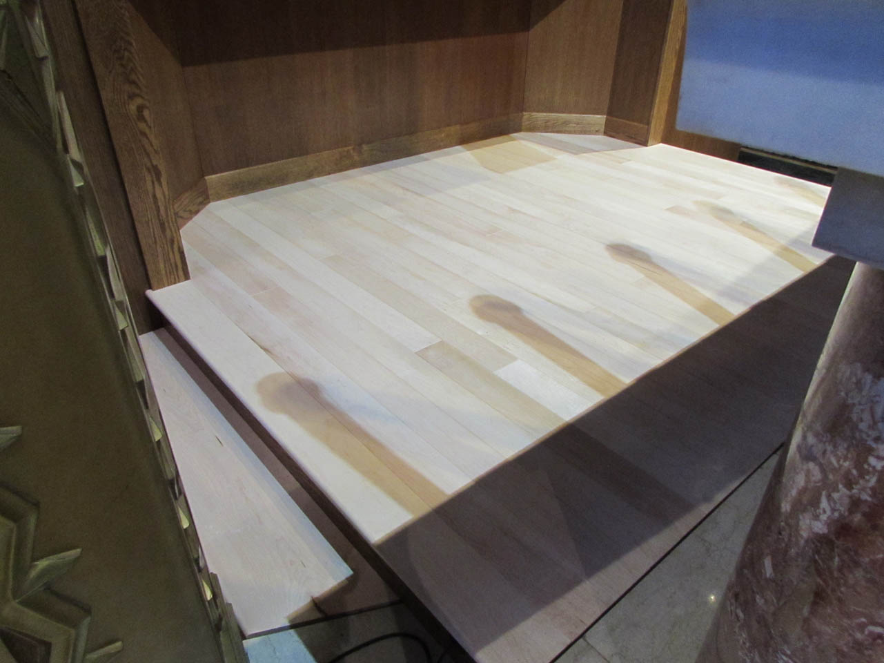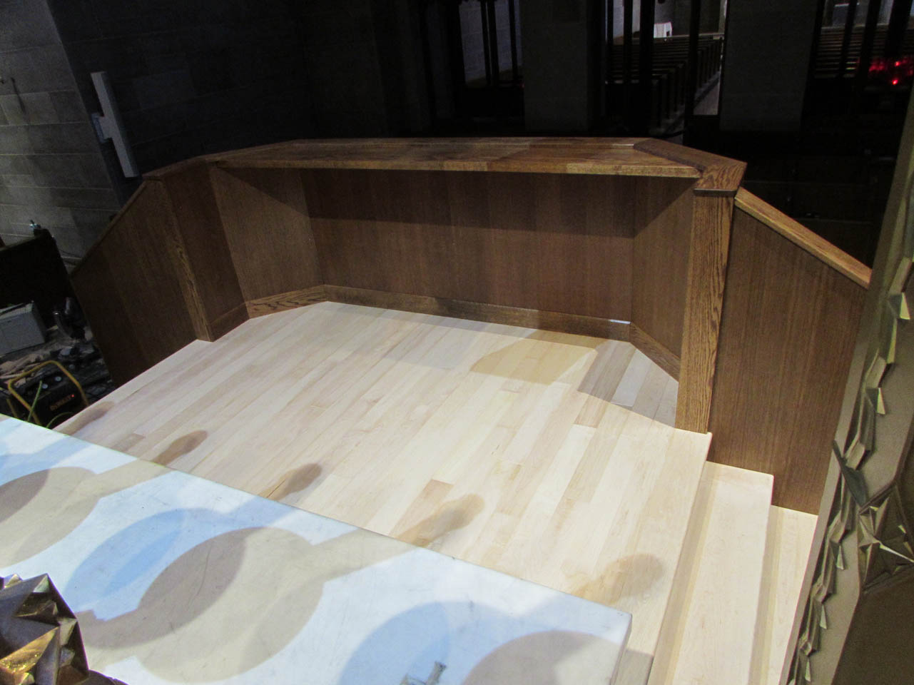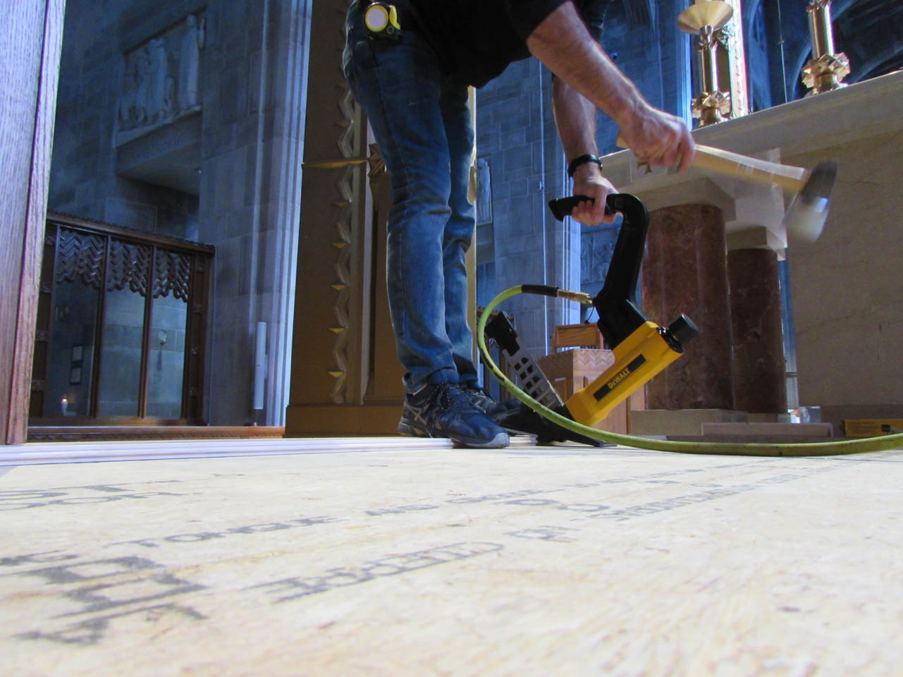 I am going to pre-finish the flooring so that I can install it in one day and not have a significant mess and fumes at the cathedral.