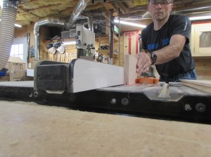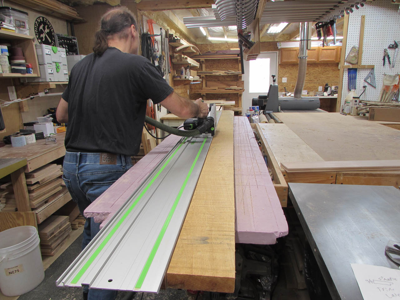 Luckily the piece I made was 4-5/8″ wide… I set up my track saw to cut the long taper.