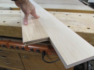 I planed it down to the exact thickness of a piece of flooring, but a bit wider.