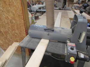 The first step is to remove any mill marks and make sure all of the flooring is the exact same thickness. I do this by running all of the flooring through my drum sander. I really only have the room to work on one bundle at a time which is good because I am hand planing a small bevel around each piece of flooring. It takes about an hour per bundle to sand and bevel.