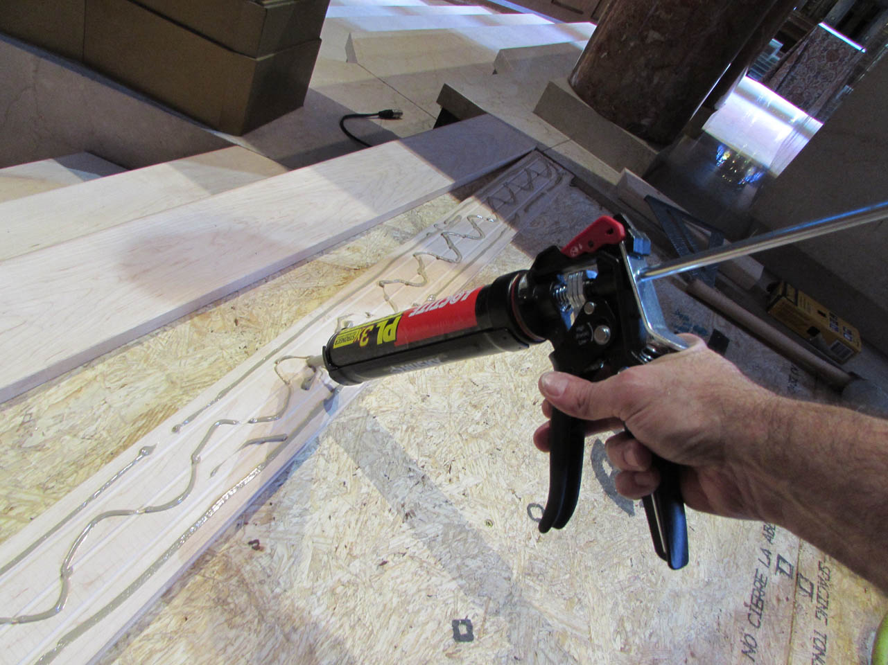 I thought it would save time to apply the glue several rows in advance, but that created a different problem because the air hose kept wanting to drag across them in the glue.