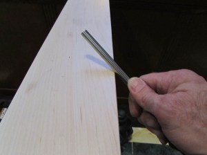 Instead of beveling the cut end and having to apply finish and wait for three coats to dry, I used my burnishing rod to roll over the finished sharp edge to mimic the finished beveled edges. It worked surprisingly well. The floor poly that I used is flexible enough that it just bent over without cracking.