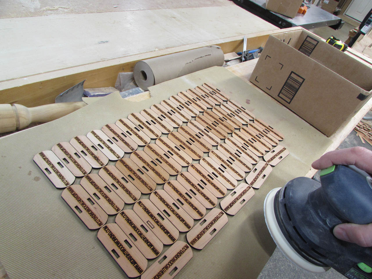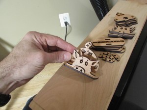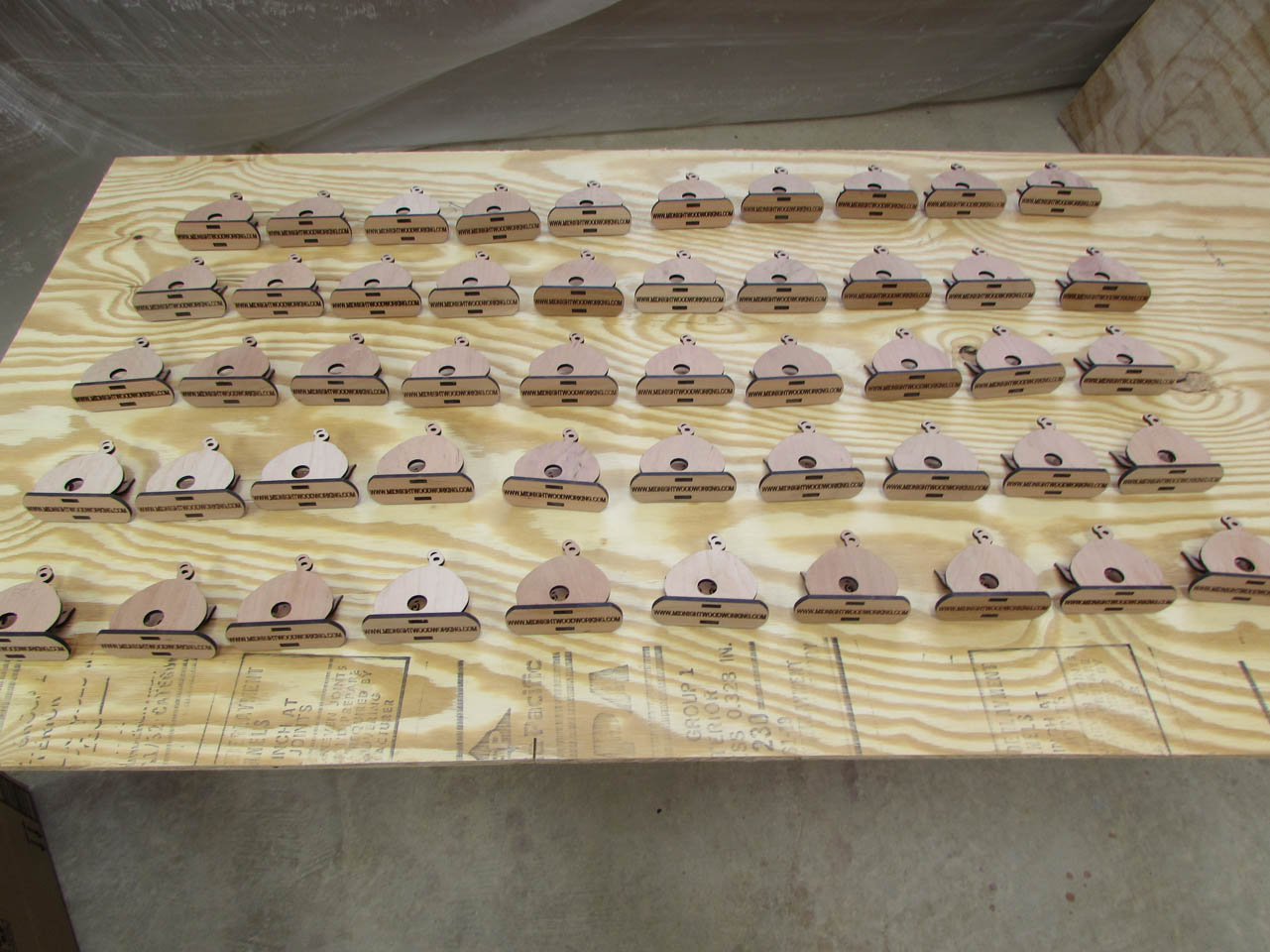 I created a program for the laser to carve out parts for six ornaments at a time and let it run.