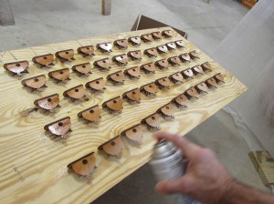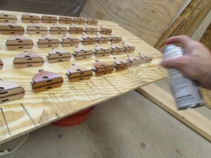 I used several coats of spray lacquer instead of my HVLP sprayer because the spray gun would have blown the lightweight piggys all over the place.